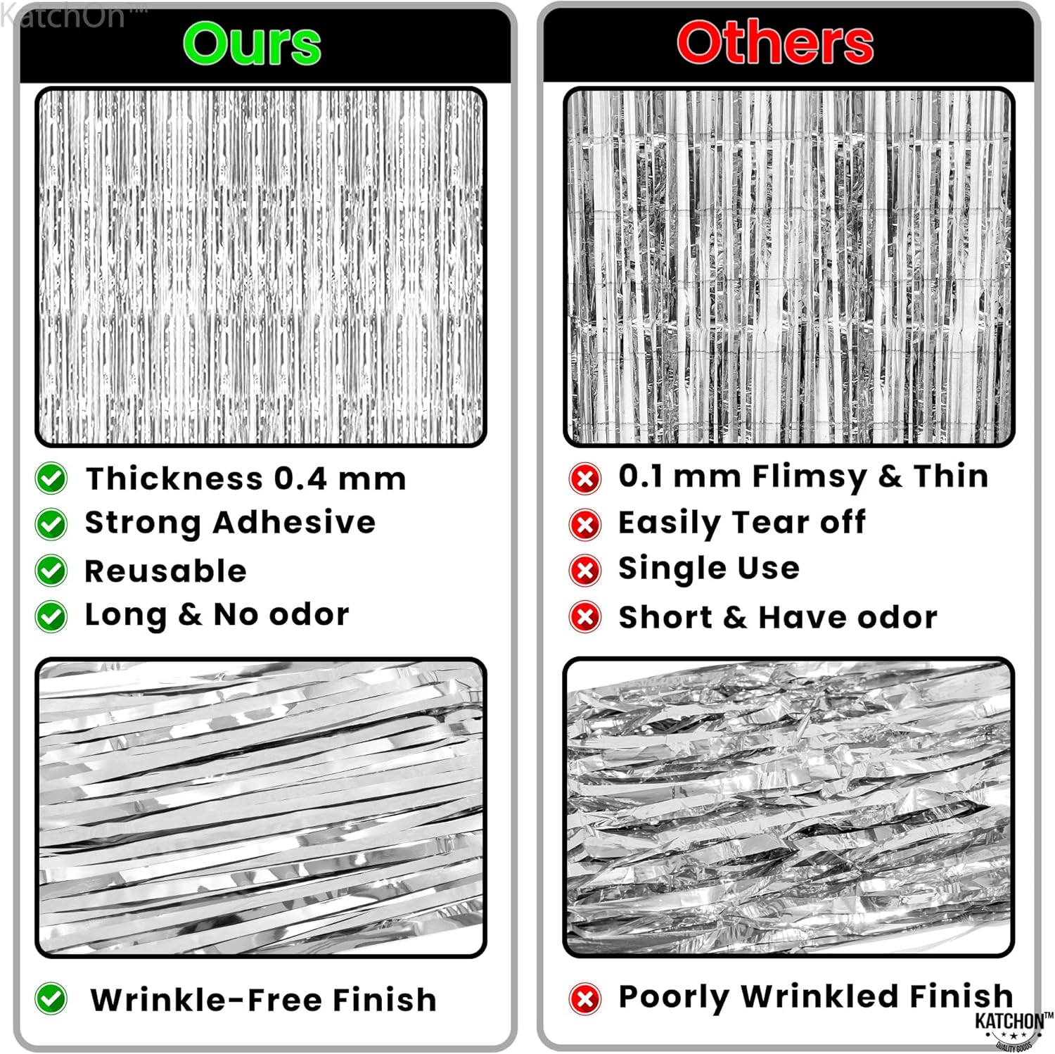 KatchOn, Metallic Silver Backdrop - Pack of 2 | Silver Streamers for Disco Party Decorations | Fringe Backdrop for Wedding, Anniversary, Birthday, New Year, Christmas, Bachelorette Party Decorations