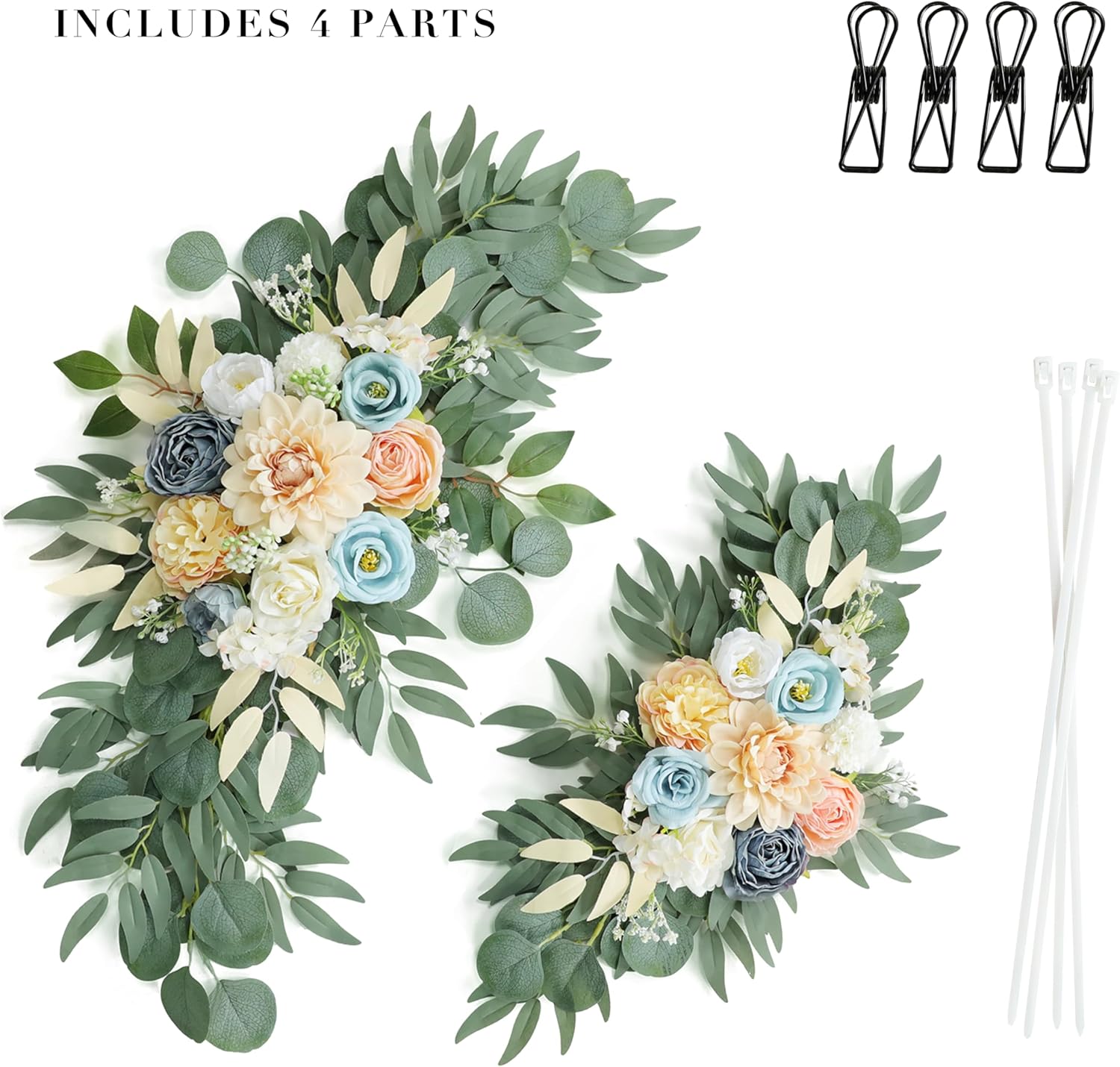 Artificial Blush Pink Wedding Arch Flower Swags Set of 2 for Wedding Welcome Signs and Ceremony Decorations, Blue Flowers