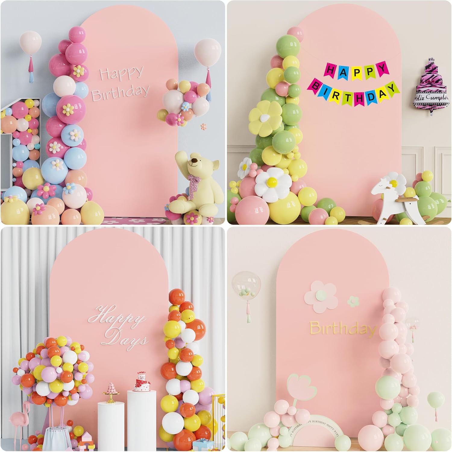 - 【Arch Stand and Covers Package】Package contains 1pcs wedding arch stand and 1pcs arch cover. Size: 7.2x4ft(HxW). Material: metal arch backdrop stand and spandex arch cover. Color: Pale Pink arch cover and gold wedding arch stand. Decorate your party with our gold arch stand and arch covers to create an epic decor for your celebration.