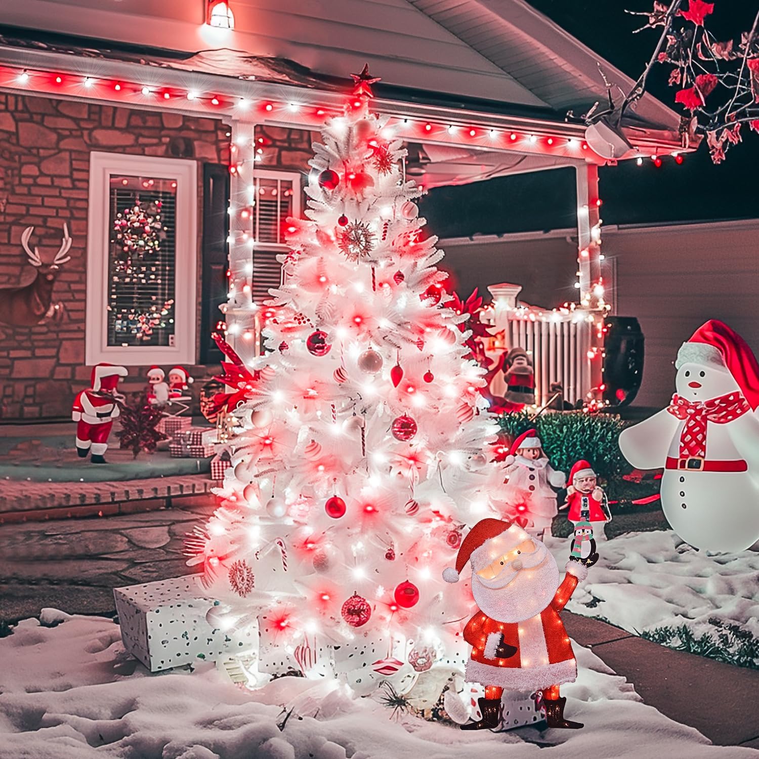 - 【8 Modes & Timer & Remote】This outdoor Christmas lights come with a wireless remote control. 8 different light modes: Steady on + 7 flash modes. Our red white led outdoor Christmas tree lights also timing function and 3 level dimming function. Different modes, timer and dimming are controlled by the remote.