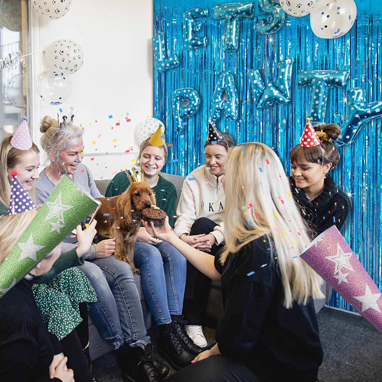 Tinsel Curtain Party Backdrop Blue Birthday Decorations 2 Packs Glitter Foil Fringe Curtain Party Decor Streamers Photo Booth for Birthday Christmas Wedding Halloween Graduation Decorations
