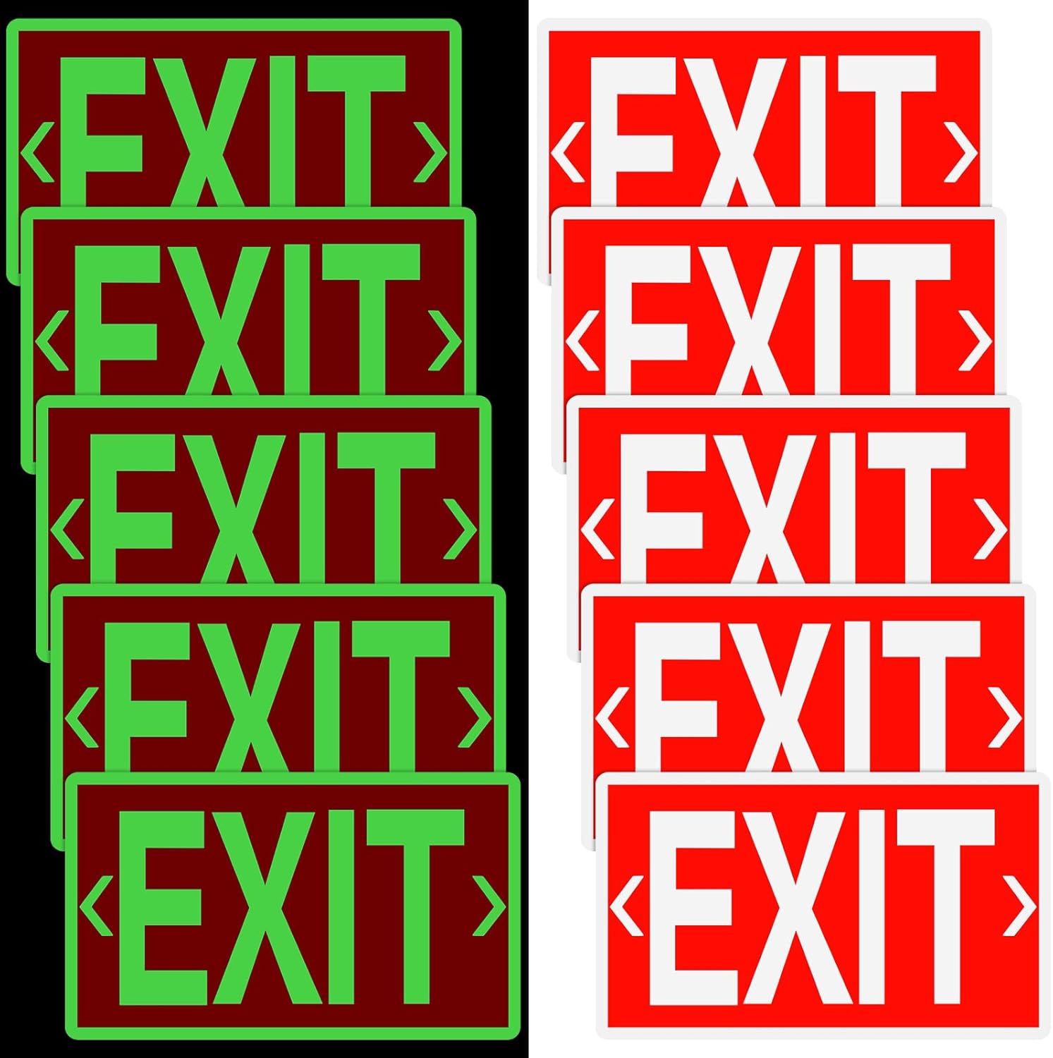 - Eye Catching Photoluminescent Signage: experience peace of mind with our pack of 10 photoluminescent glow in the dark exit signs; The signs, made from gleaming white and red vinyl, will ensure a noticeable, clear information guide, making them the ideal solution for every location; They are tailored to perfection with a size of 12 x 7 inches ensuring visibility from a far distance