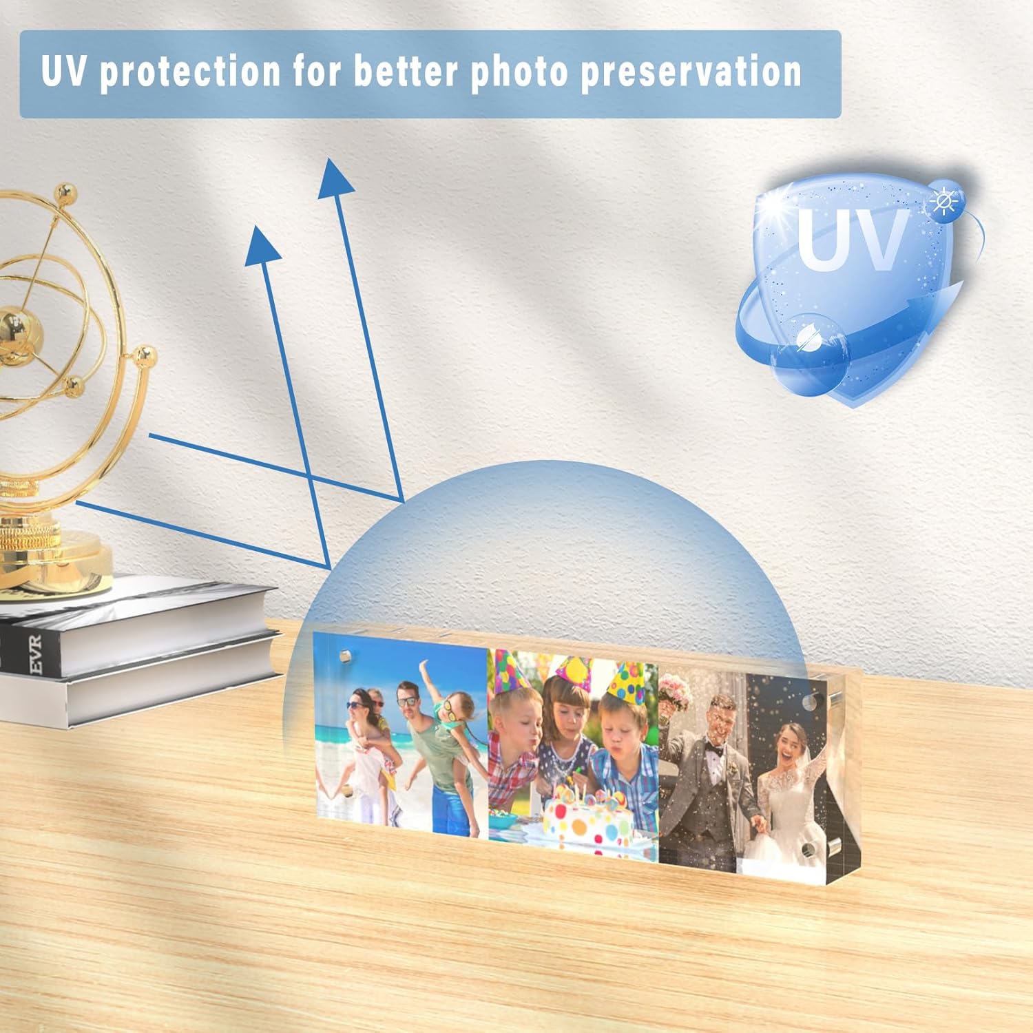 - UV Protection: All HELPLEX acrylic frames are made with anti-UV acrylic panels, which effectively protect photos and greatly slow down the aging and fading process of the pictures.