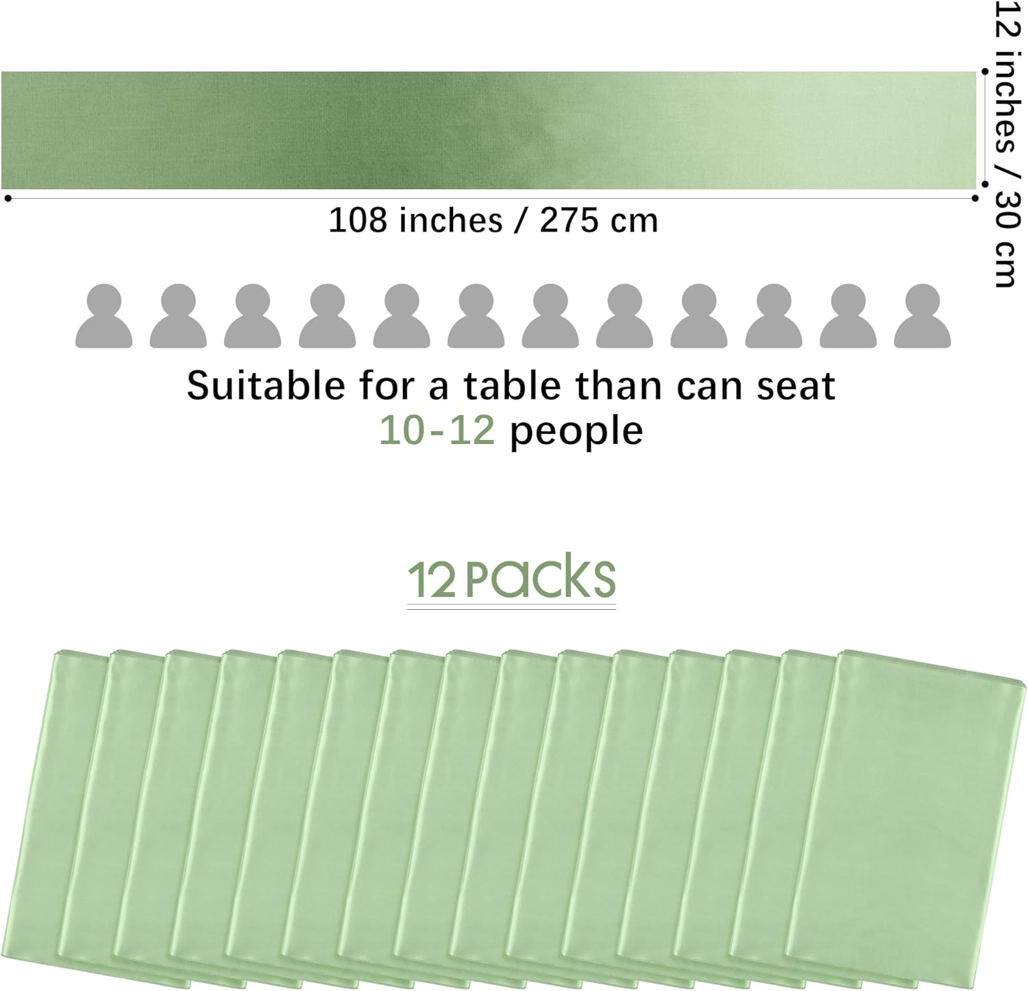 - Ample Quantity & Elegant Color: includes 12 satin table runners, offering ample decoration for weddings and various gatherings; the sage green color adds an elegant touch to your table setting that guests are bound to appreciate, providing a sophisticated and welcoming ambience that will be a hit with your guests