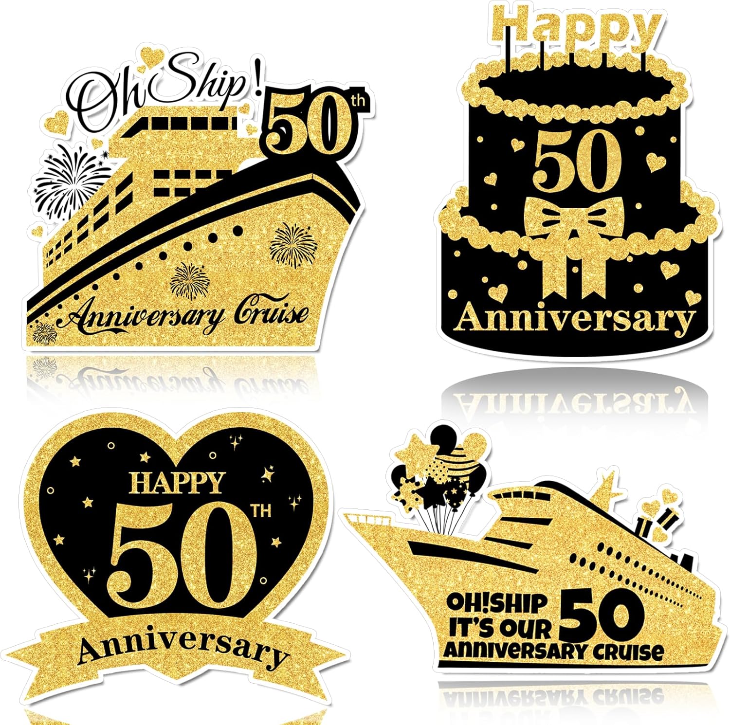 - 🎉【Package Includes】 You will receive 4 pieces of balck gold 50th Anniversary Cruise Door Magnets in 4 styles, 1 of each style. These Happy 50th Anniversary magnets are related to the cruise theme and the 50th Anniversary Cruise Door Decorations feature the words ‘50th Anniversary Cruise’ to decorate your home and share with others