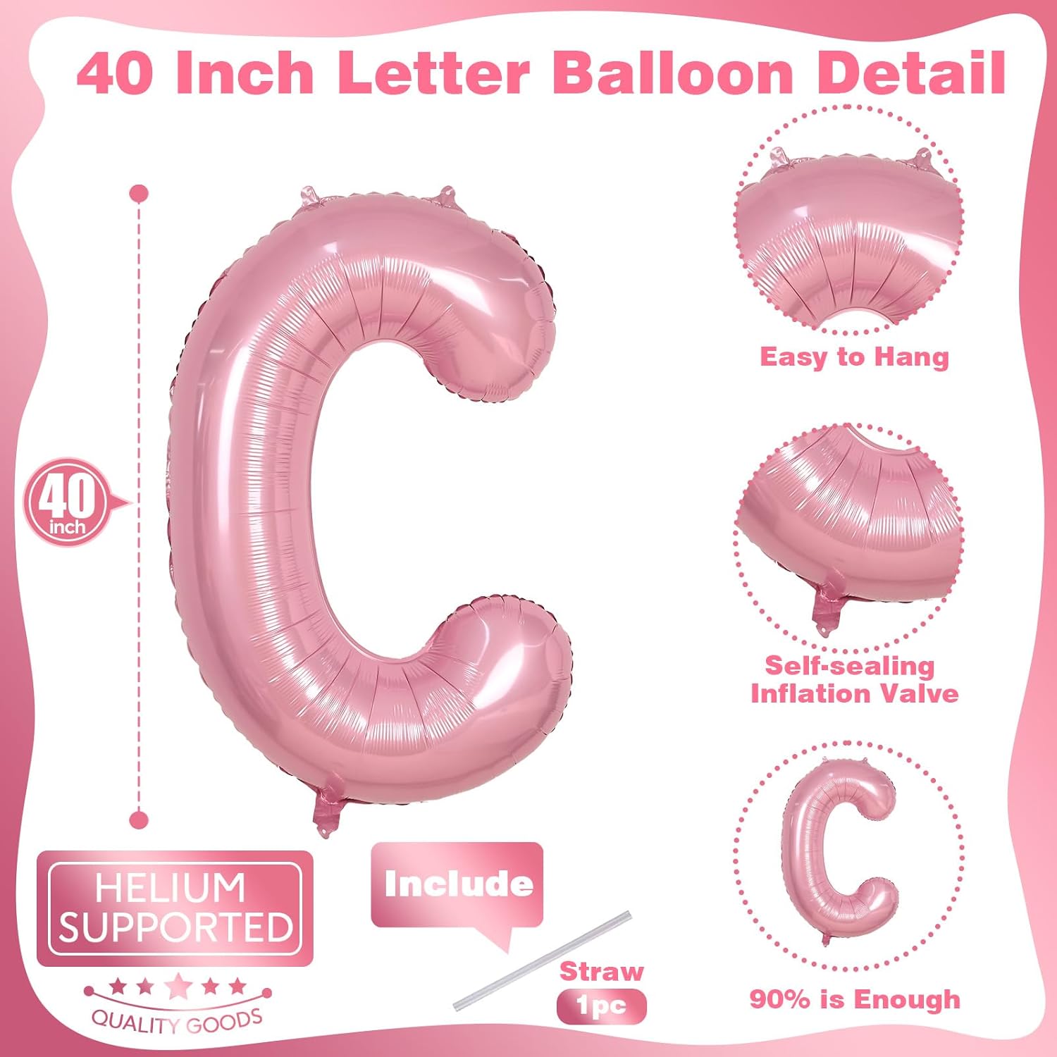 - š What You Will Get: Our giant letter balloon package includes 1pc 40 inch "C" letter foil pastel pink balloon and 1pc convenient straw for inflate. You can choose any big alphabet balloon to combine and customize the word you want to form. For example: OH BABY, BRIDE, GIRL, BIG SIS. Make your party more unique and meaningful.