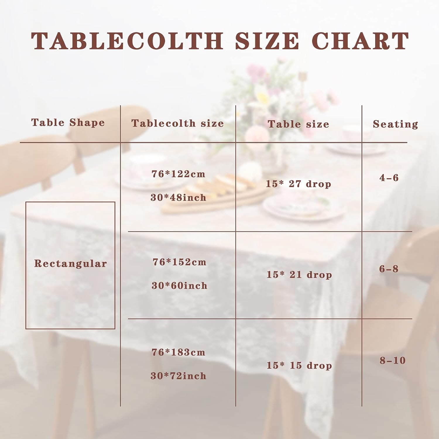 - π Widely Used: The embroidered white tablecloths perfect decor for boho wedding, country wedding, romantic candlelight dinner, baby shower, bridal shower and can also be used as a dresser scarf, coffee table linen or everyday use. You can also use it for DIY design, convert the lace table cover into gift bows, chair sashes, wedding tulle and decorations.