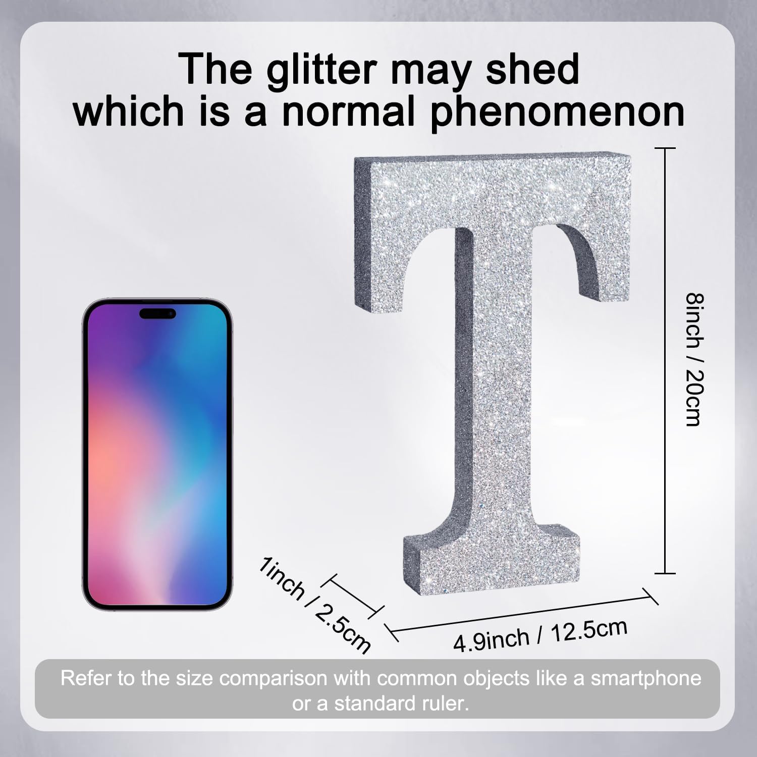 - ITEM INFORMATION AND SIZE: 1 Pcs * T Silver Glitter Letter Ornament. Size: 8 * 5.8 * 1 Inches (20*15*2.5 CM). Before purchasing, Please check the size carefully to make sure it meets your needs