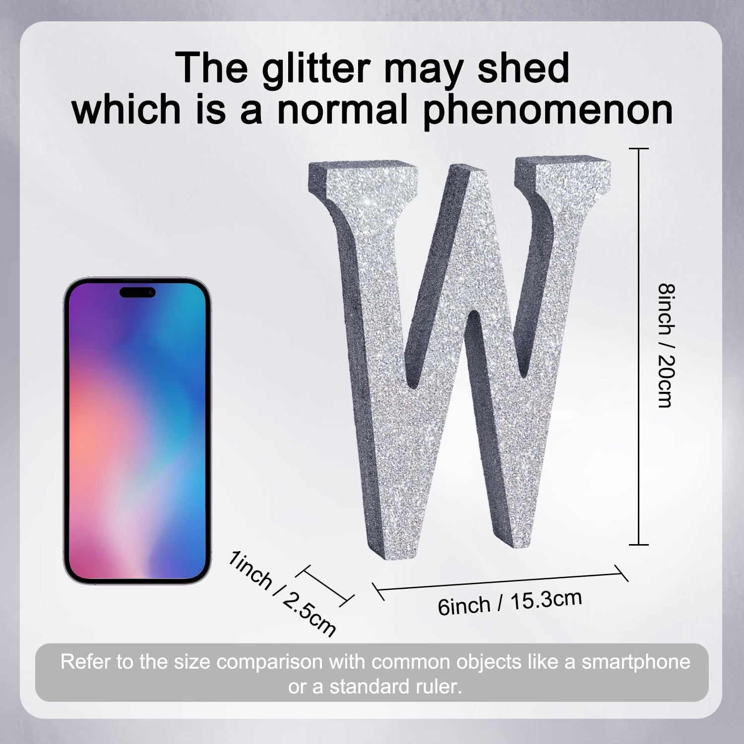 - ITEM INFORMATION AND SIZE: 1 Pcs * W Silver Glitter Letter Ornament. Size: 8 * 5.8 * 1 Inches (20*15*2.5 CM). Before purchasing, Please check the size carefully to make sure it meets your needs