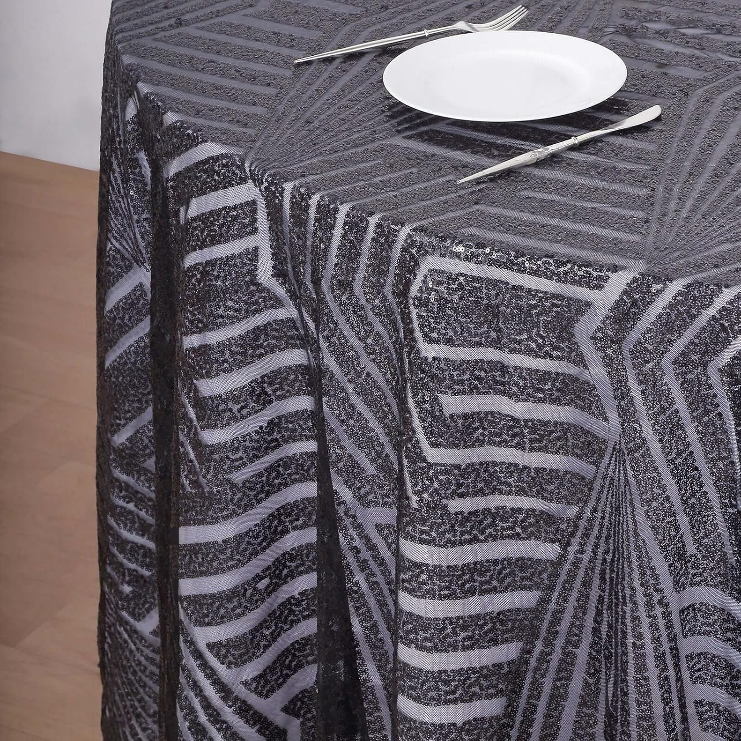 Efavormart 120" Black Sparkly Sequin Geometric Tulle Round Tablecloth