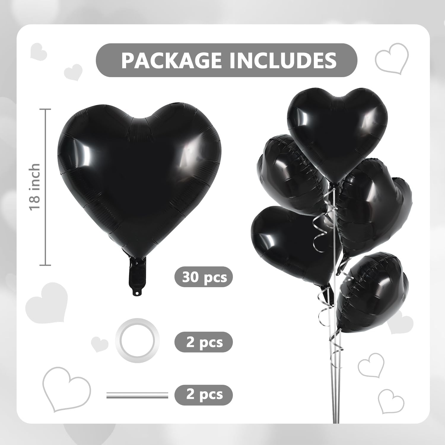 TONIFUL 30Pcs 18 Inch Black Heart Balloons Black Heart Shape Foil Mylar Balloons Decoration for Birthday Valentine's Day Wedding Bridal Shower Anniversary Engagement Party Supplies