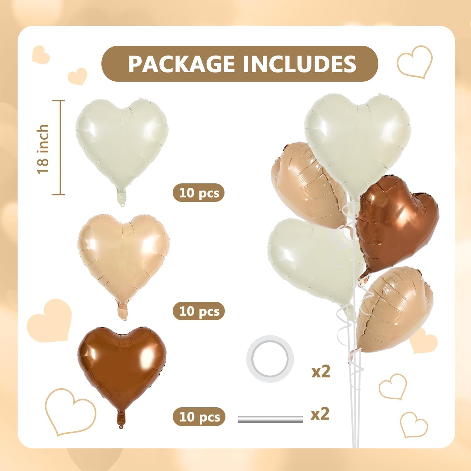 TONIFUL 30Pcs 18 Inch Cream White Heart Balloons Light Brown Coffee Foil Balloons Decoration for Thanksgiving Birthday Valentine's Day Wedding Bridal Shower Anniversary Engagement Party Supplies