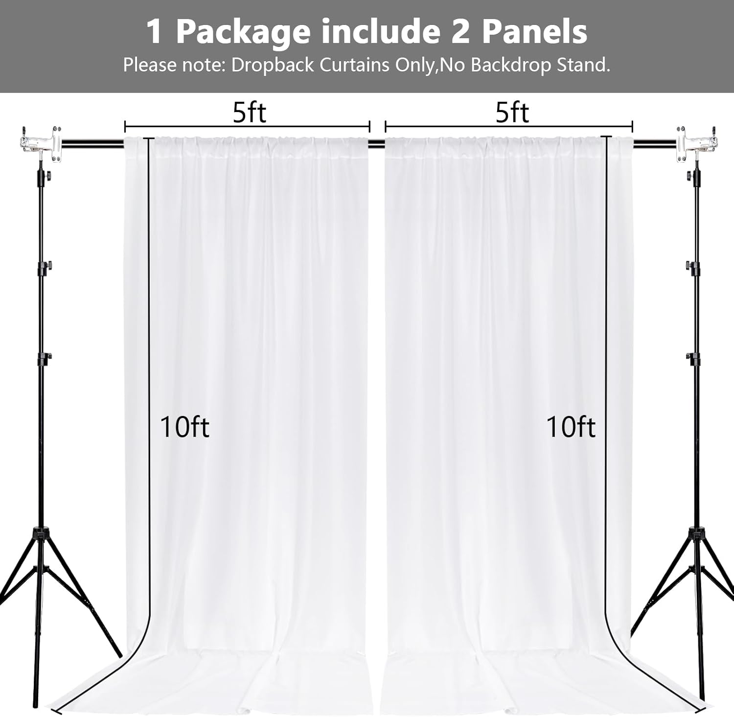 MEETSKY 10 feet x 10 feet White Backdrop Curtain for Parties Wedding Decor- White Photography Rod Pocket Backdrop Drapes Polyester Fabric Curtain for Birthday Holiday Party, 5ft x 10ft, 2 Panels