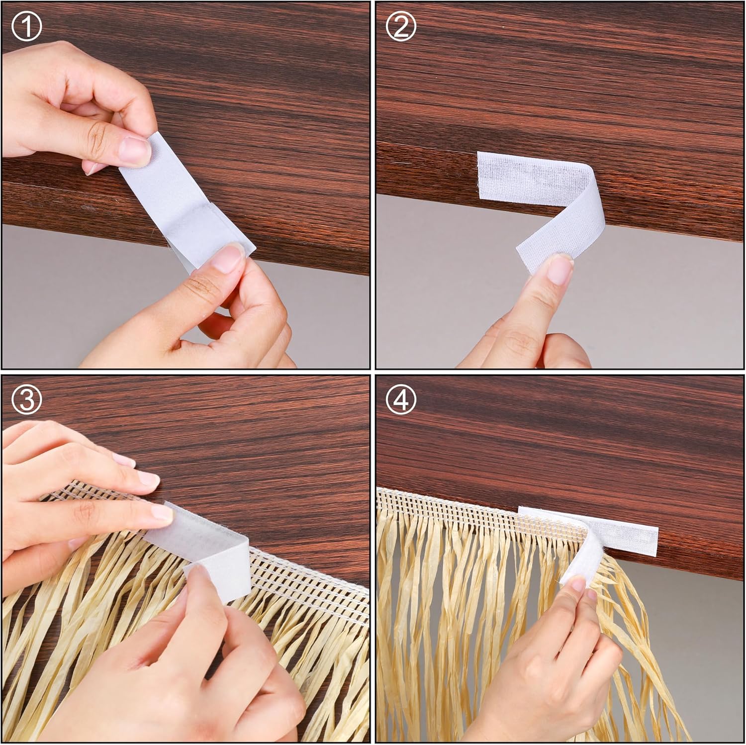 - Package includes: there are 4 packs of Hawaiian luau paper table skirts in each package, coming with 20 pairs of self-adhesive hoop and loops for use, sufficient for multiple-purpose use