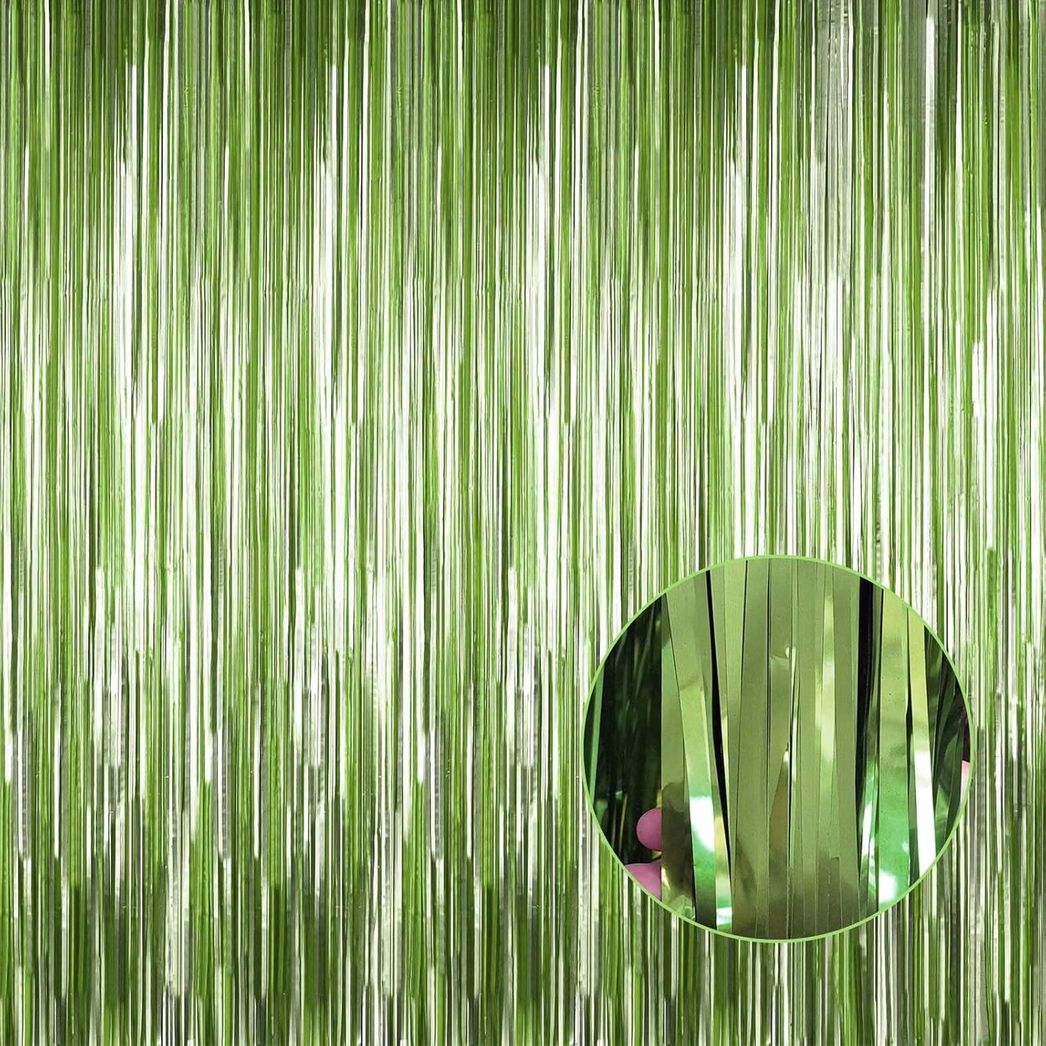 4 Pack Light Green Foil Fringe Curtain Backdrop, 3.28Ft x 8.2Ft Metallic Tinsel Foil Fringe Streamer Curtains for Photo Booth Props, Birthday, Wedding, Christmas Decorations Party Supplies New