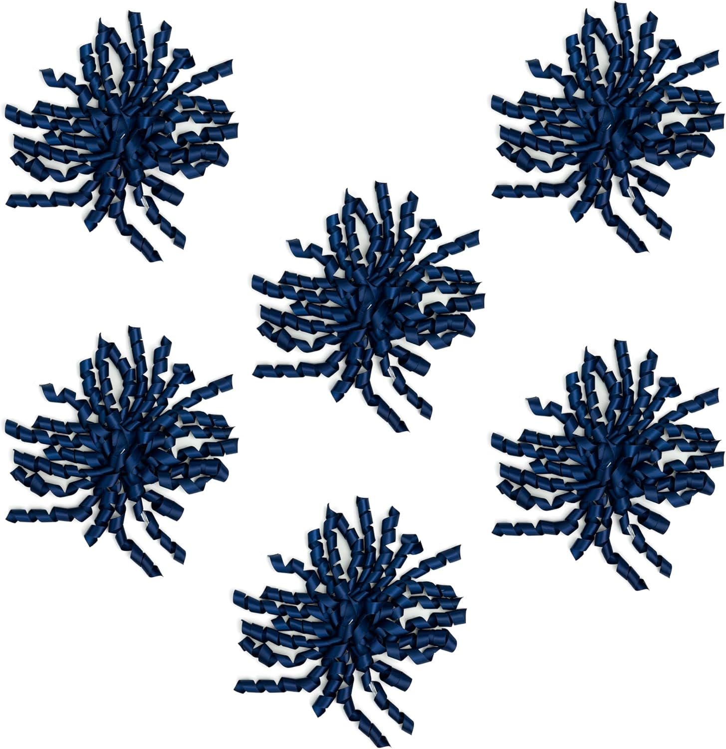 6 Inch Navy Curly Bows for Gift Wrapping Set of 6, Self Adhesive Bows Navy Blue Gift Bows for Presents, Satin Ribbon Bows for Birthday, Wedding, Christmas, Bridal Shower, Gift Wrap Accessory