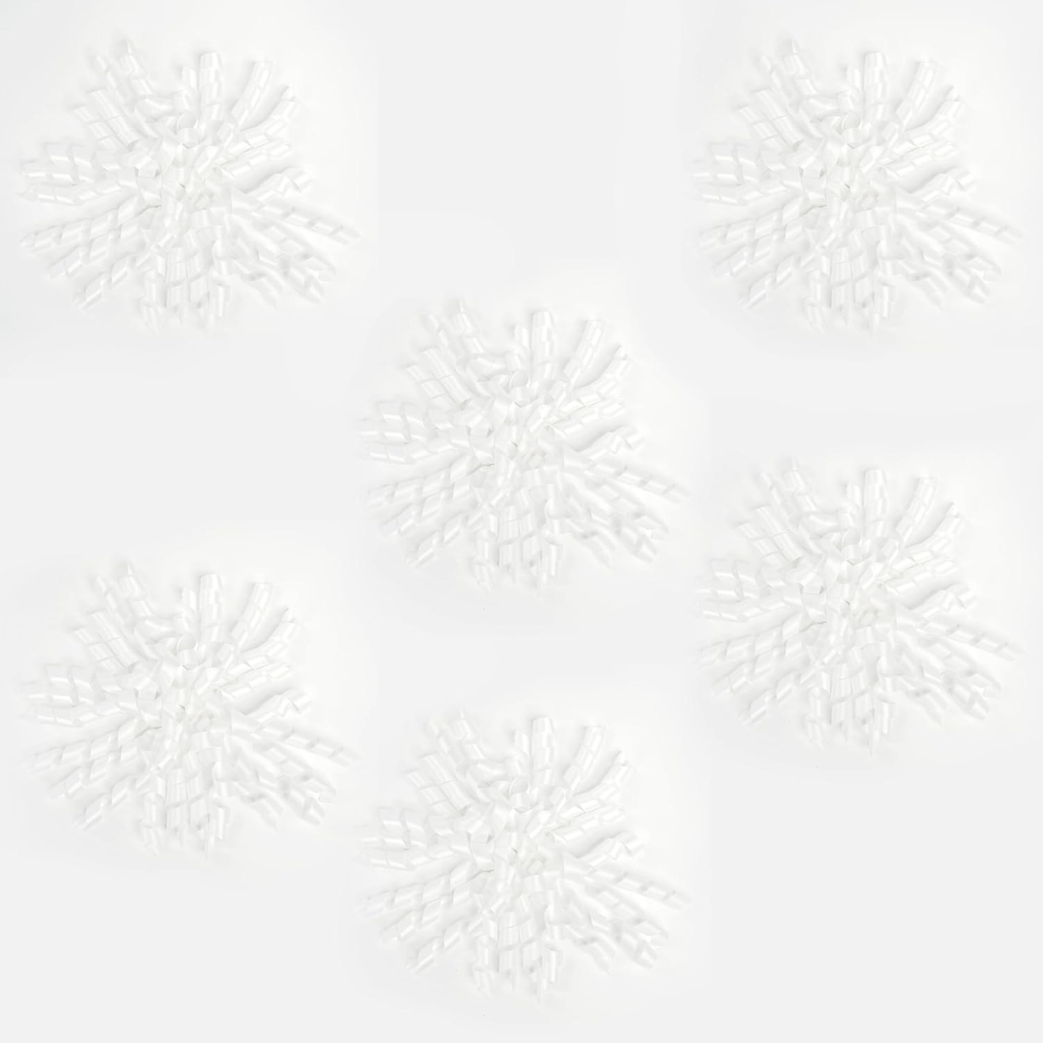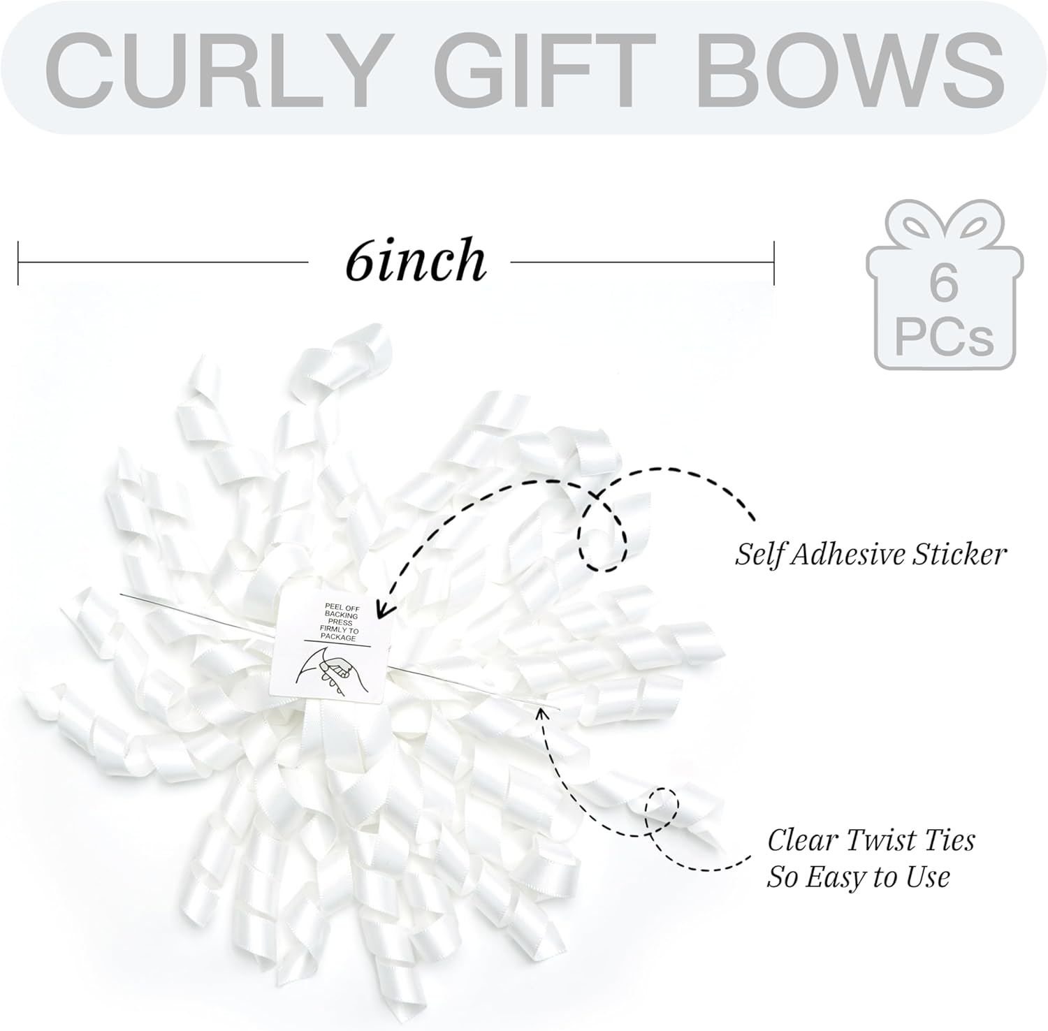 6 Inch White Curly Bows for Gift Wrapping Set of 6, Self Adhesive Bows White Gift Bows for Presents, Satin Ribbon Bows for Birthday, Wedding, Christmas, Bridal Shower, Gift Wrap Accessory
