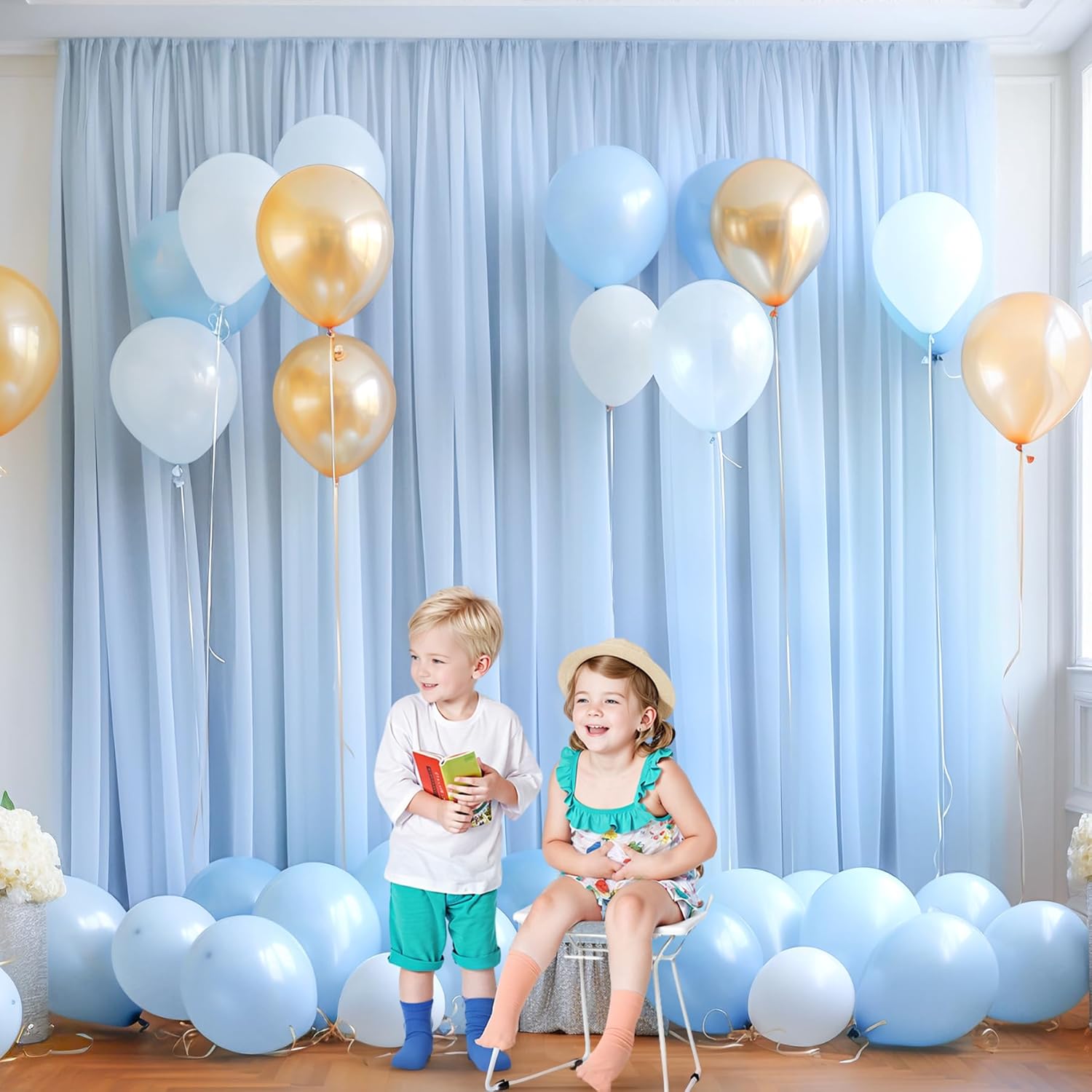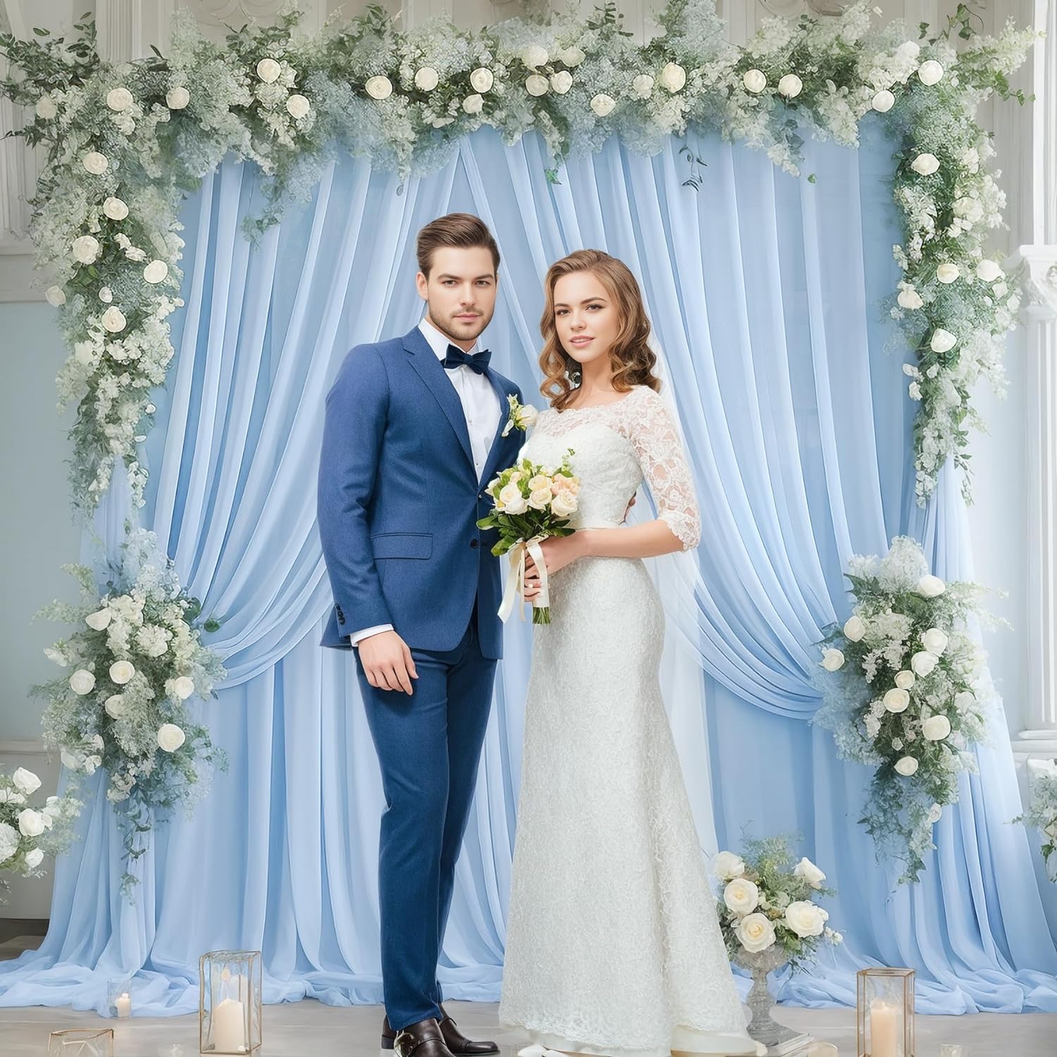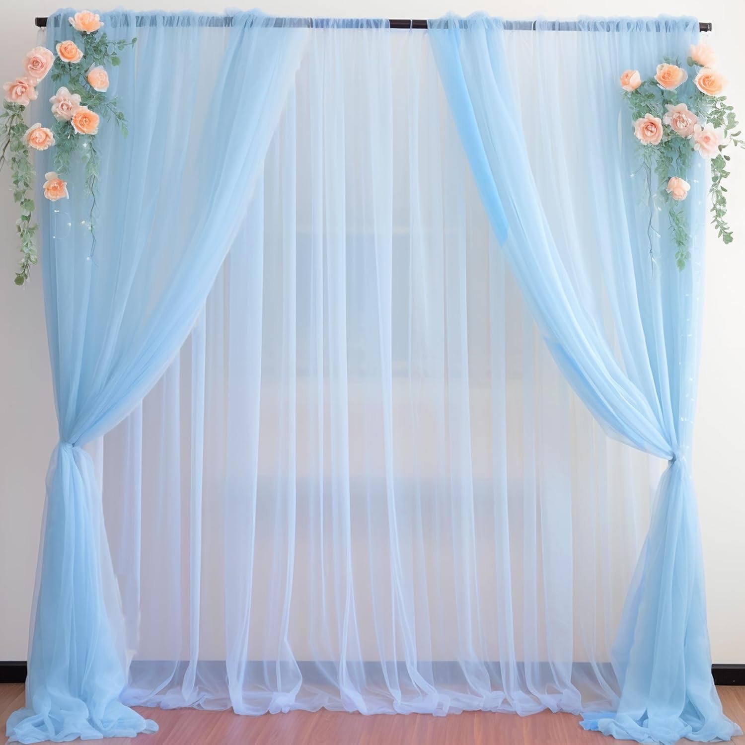- ăMultiple Use Sheer CurtainsăOur baby blue drapes for backdrop are applicable for any indoor and outdoor occasions. Perfect for wedding arch draping fabric, wedding reception decorations, birthday party curtains, bridal and baby showers, birthdays, candy buffet curtain, dessert table background, trade shows, wedding stage photography, photo booths, ceremony and more.