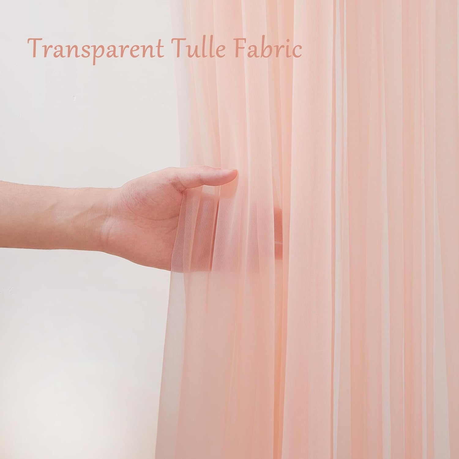 20ft X 10ft Peach Tulle Backdrop Curtain for Parites, Sheer Backdrop Curtains Fabric Drapes for Wedding Ceremony Arch Party Stage Decorations