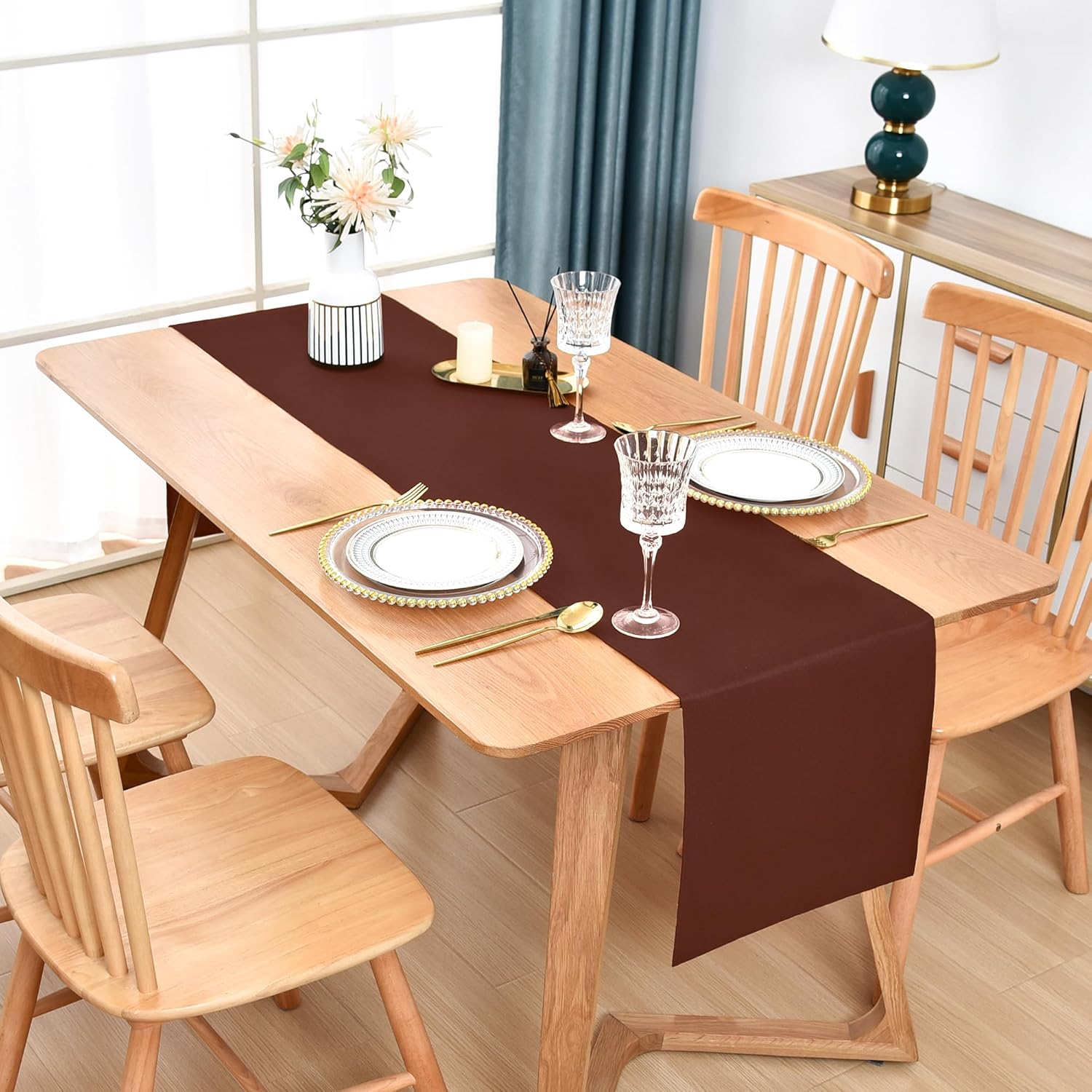 - Serviceable Materials: This chocolate table runner is made of polyester, which makes them soft, reliable and reusable. In addition, it will not shrink or fade because of washing. Our advanced fabrics and exquisite craftsmanship not only make this table runner quite practical, but also bring it high quality texture.