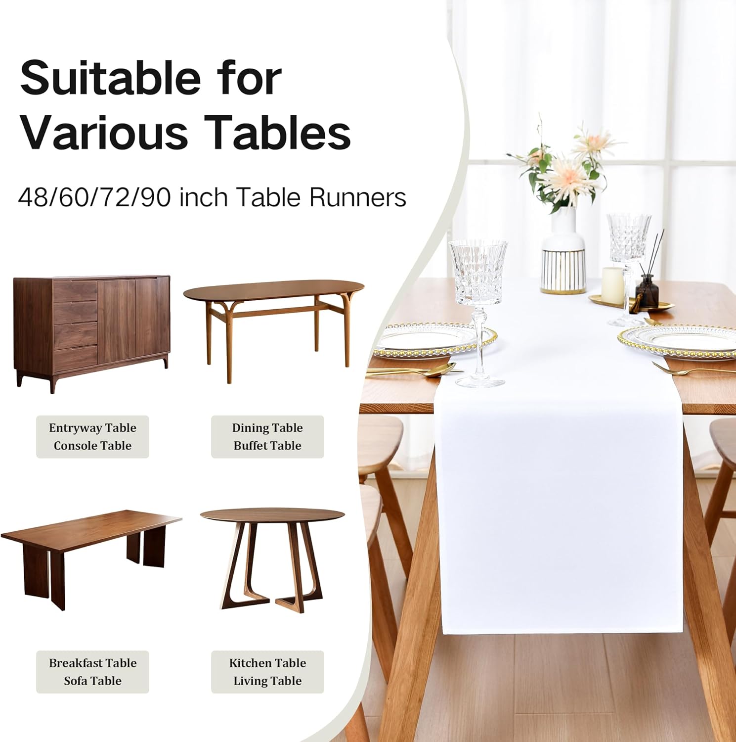 - Serviceable Materials: This white table runner is made of polyester, which makes them soft, reliable and reusable. In addition, it will not shrink or fade because of washing. Our advanced fabrics and exquisite craftsmanship not only make this table runner quite practical, but also bring it high quality texture.