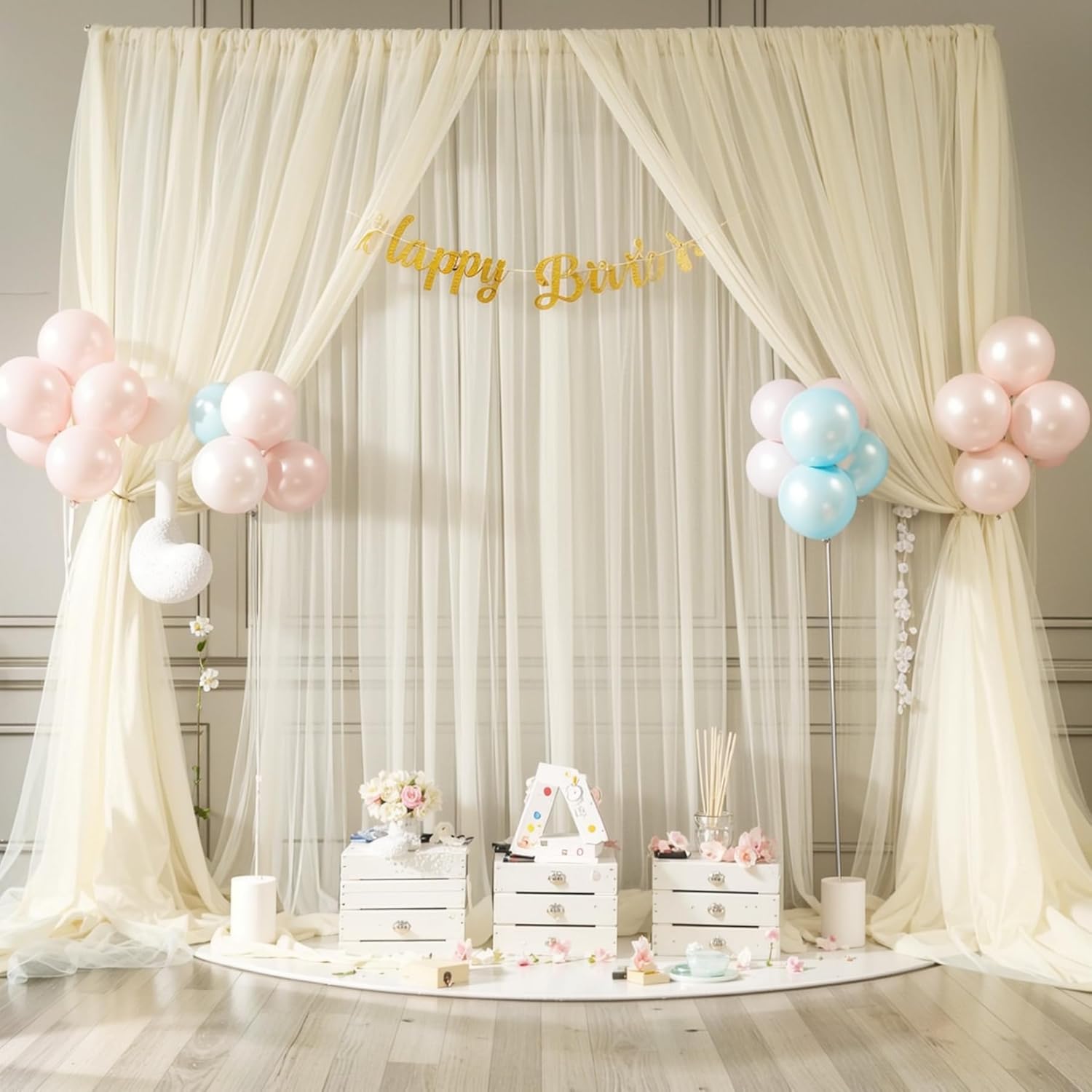 Ivory Tulle Backdrop Curtain for Wedding Parties 10ft x 8ft Sheer Backdrop Curtains for Bridal Shower Birthday Baby Shower Photo Shoot Background Decorations 2 Panels 5ft x 8ft