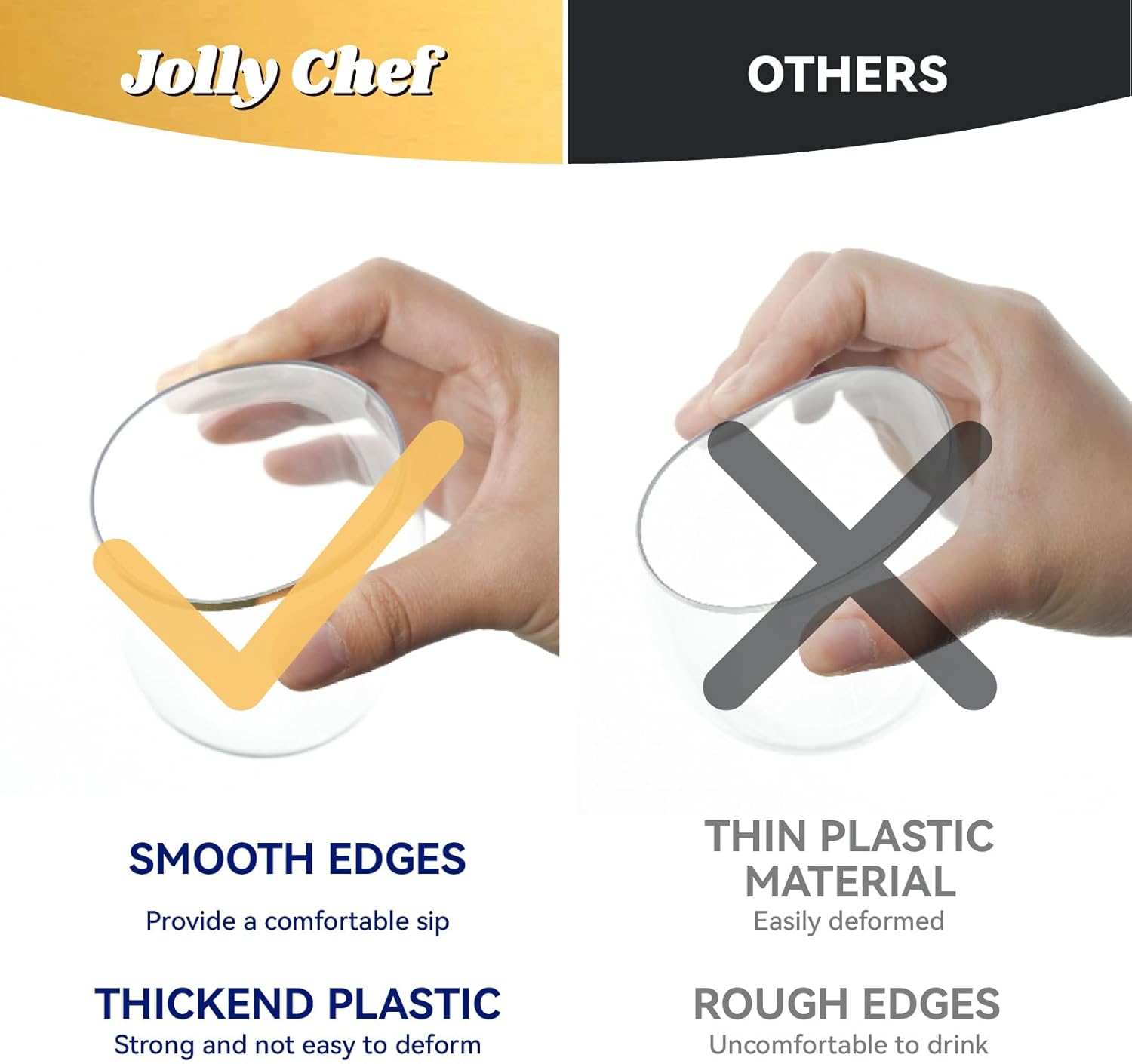 - Exquisite design:Stemless clear plastic wine glasses with gold rimmed design are high-end and elegant, and the transparent glass body better sets off the colorfulness of the drinks, adding a few colors to your party