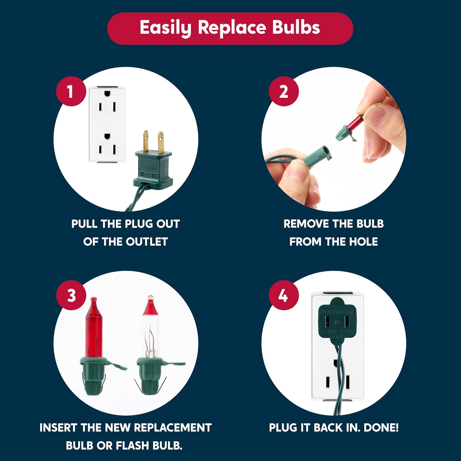 - Premium Quality. Our incandescent red Halloween string lights are designed with strong durability to accommodate harsh weather conditions. Includes spare bulbs, flashes, and fuses. If one bulb burns out, the others stay lit.