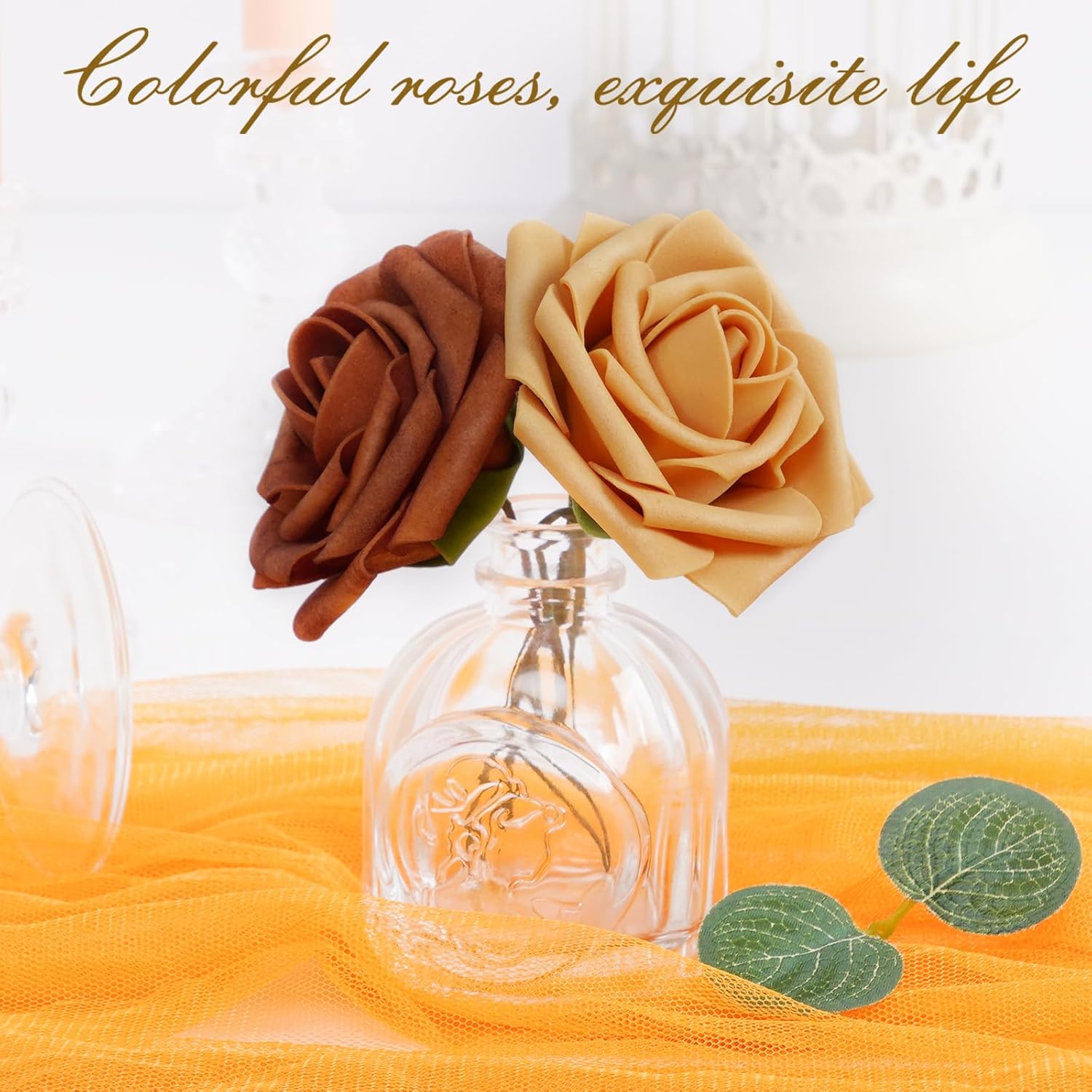 - Kindle Your Creative Flames: The box includes 16 gradient burnt orange roses (3" flower head, 8" stem) and 4 green rose leaves, perfect for an array of DIY crafts. Whether creating wedding bouquets, graduation or birthday party ornaments, baby shower decorations, or cake adornments, our faux roses add a touch of class to every important moment.