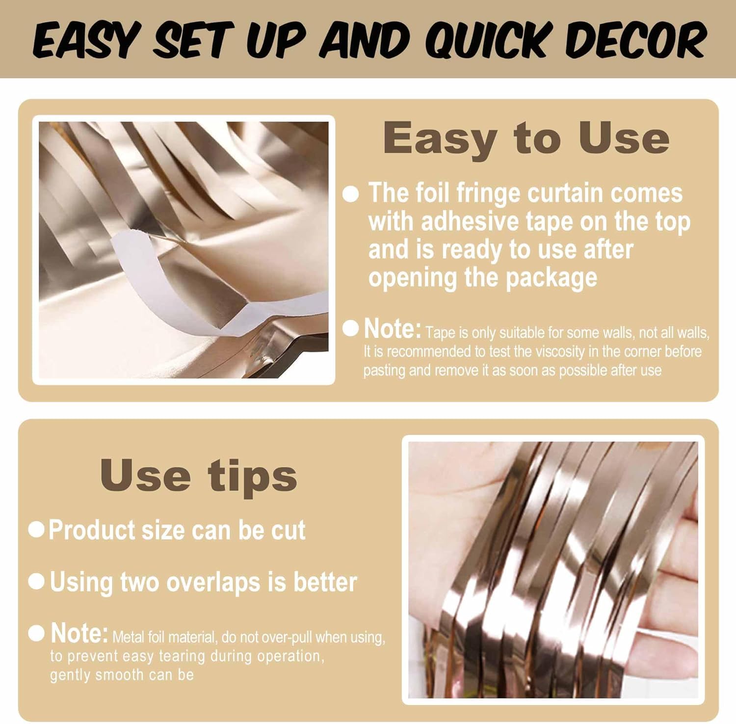 - Easy to Use: The tinsel foil fringe streamers curtain backdrop comes with double sided tape on the top, gently peel plastic strip off and it would be very easy to paste on smooth surfaces such as wall, window, table, door or anywhere you like