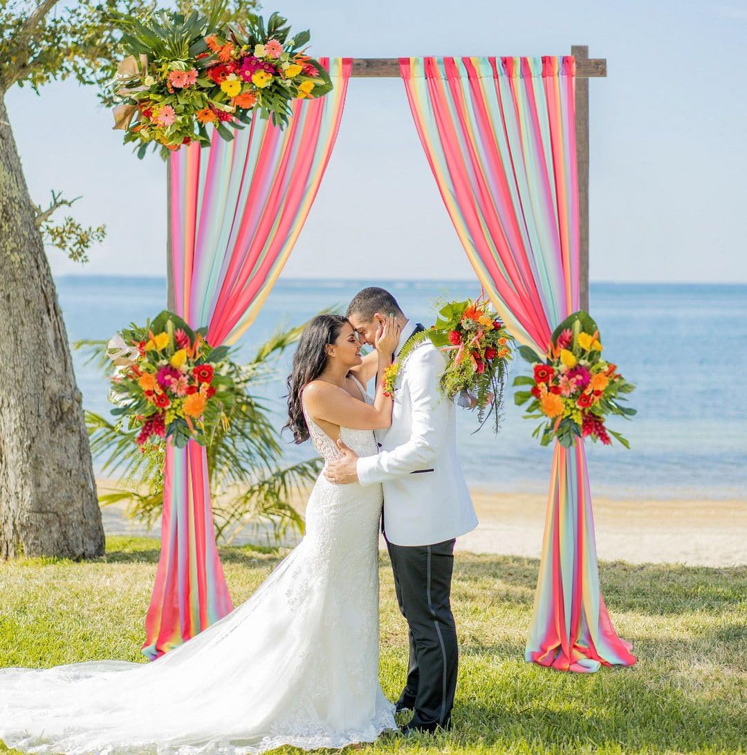 DUOBAO Rainbow Sheer Chiffon Curtains - Premium Fabric Drapes for Wedding Backdrop, Party Decor, Living Room -10x10ft 2 Panels(58" x120)