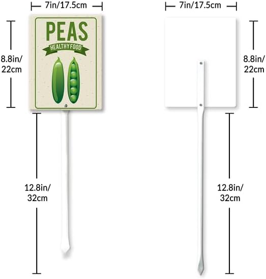 - [Extra large size] The plant tags total height 21.6", Width 7“ , Thickness is 0.07". The extra large size of the label makes the graphics are easy to read and attractive. Ther are thick, tall, and sturdy, and go into the ground easily