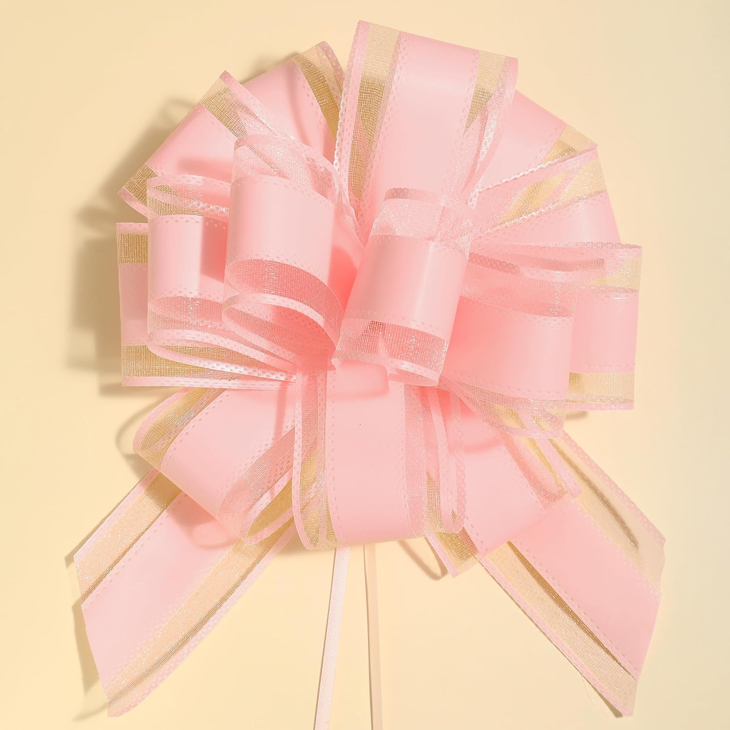 ZhXu Shuo 6 Pieces Large Pull Bows, 6 inches, Organza Fabric, Pink, Wedding & Birthday Occasion, Special Occasions, Classic & Traditional Style, Solid Pattern