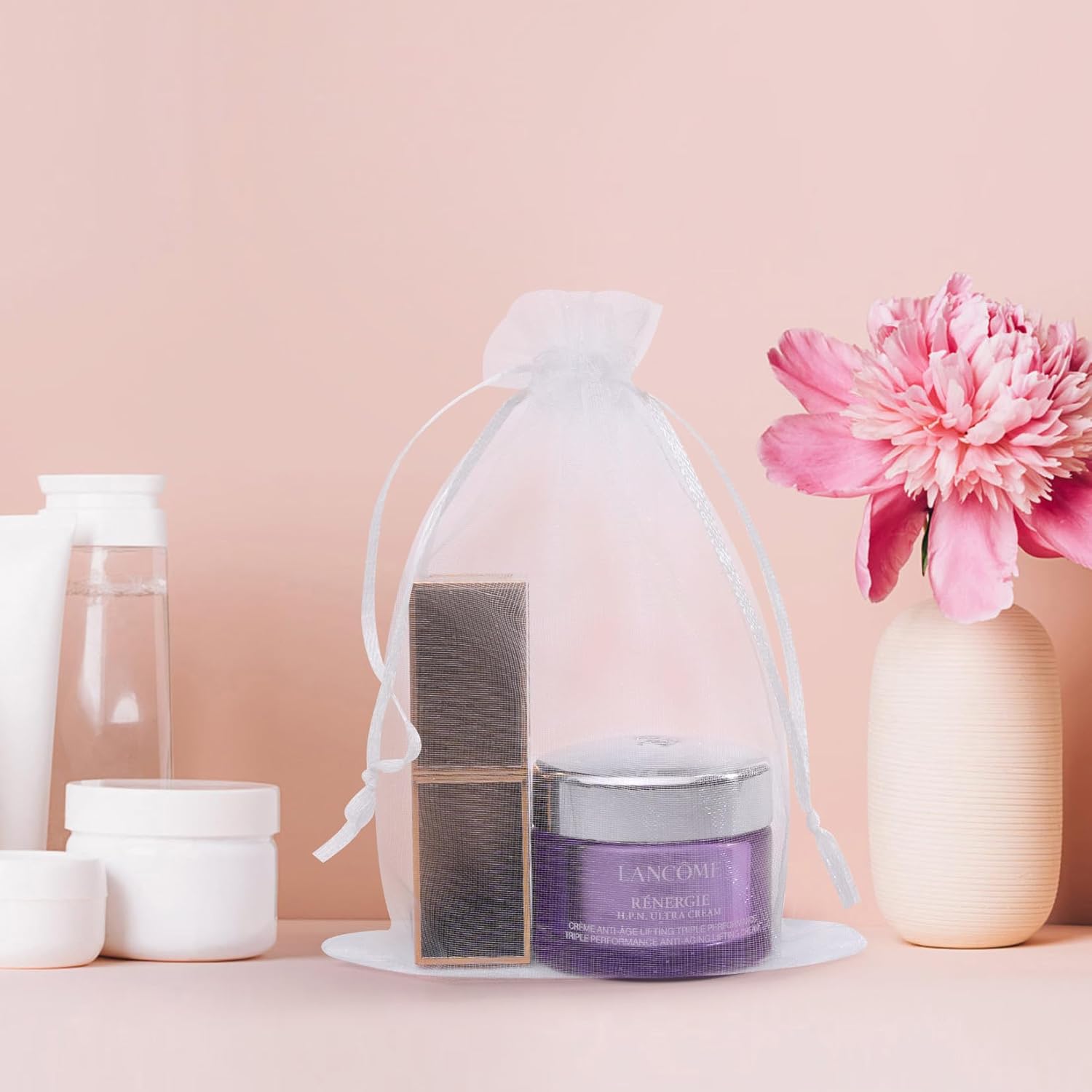 50 Pcs White Organza Bags 4x6 Inch Small Mesh Bags Drawstring Small Gift Bags Goodie Bags for Jewelry Candy Party Favor