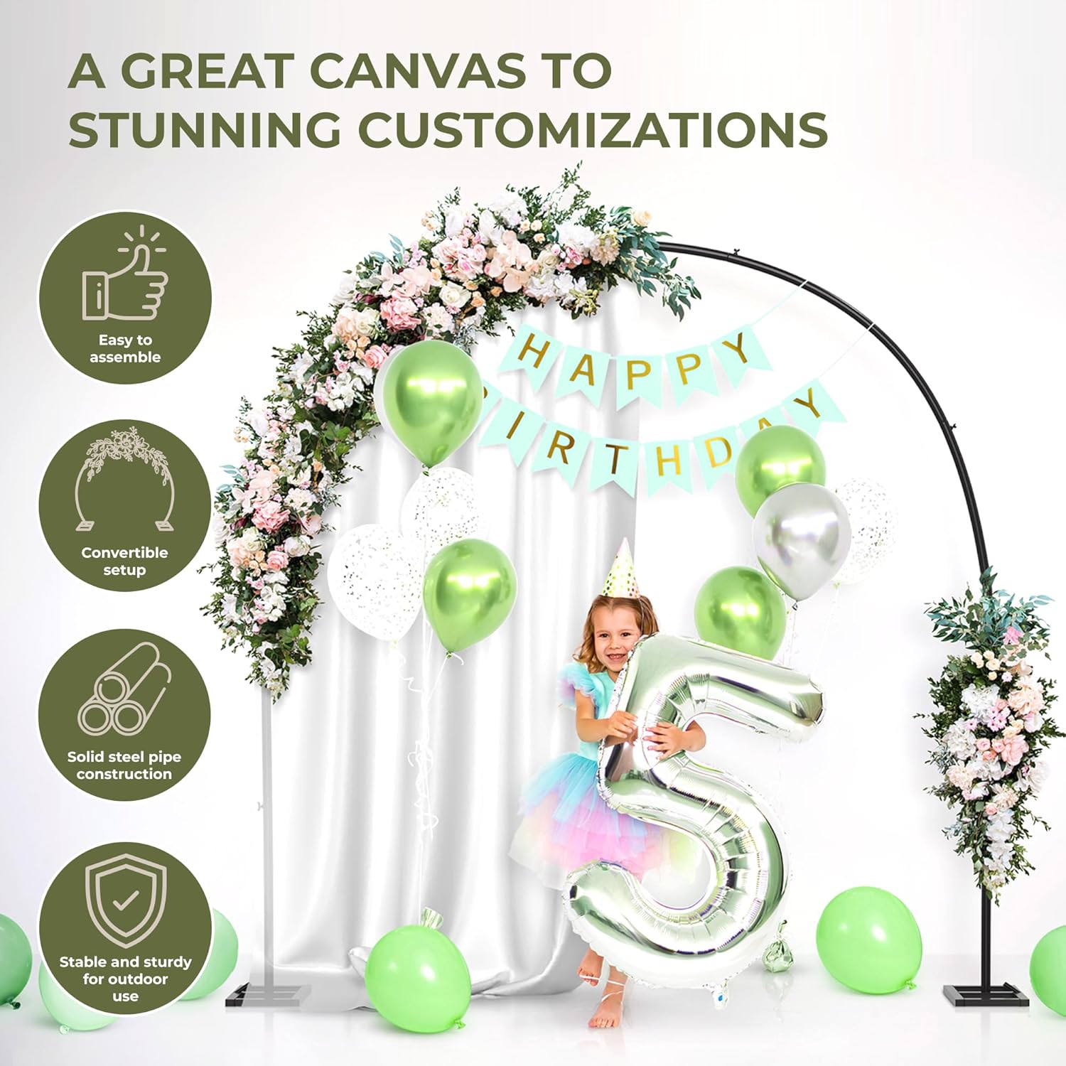 - SET UP IN SECONDS: Insert the 2 arch poles for a full circle or the 2 straight poles for an arch shape. Quick, simple, and perfect for creating stunning event backdrops with this balloon arch backdrop stand. No tools, no hassle, just quick results!
