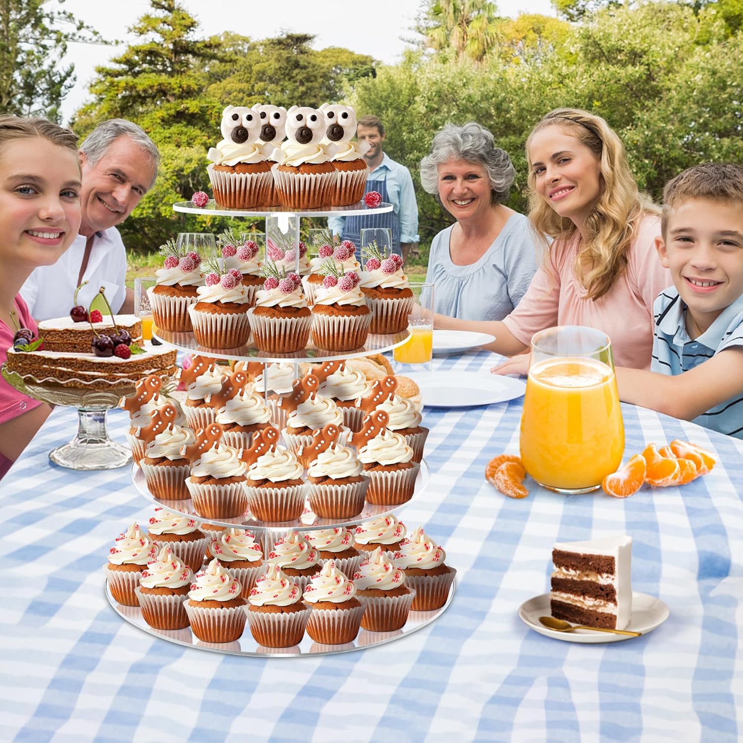 - 【Durable Acrylic】 This premium cake stand is built from top-tier acrylic, resistant to wear, and ideal for both family gatherings and large celebrations. A reliable, long-lasting cupcake holder option that effortlessly handles up to 38 cupcakes from diameter 2”-2.5”. if the diameter is more than 2.5”, it will hold less than 38 pcs cupcakes