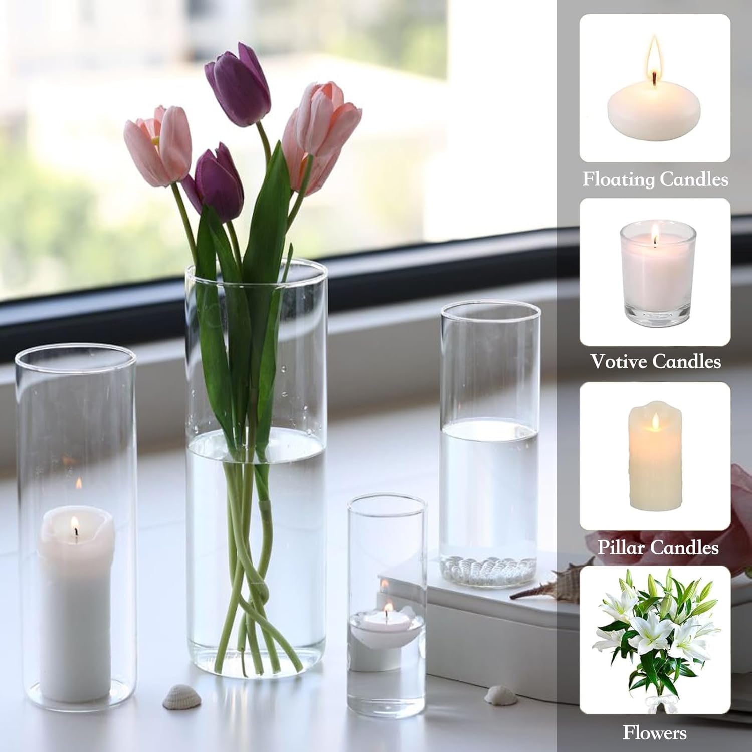 PHOSPHOR 16 PCS Glass Candle Holder, Hurricane Candle Hoder, Glass Pillar Candle Holder, Clear Cylinder Candleholder Cylinder Vase for Centerpieces Wedding Party Decoration