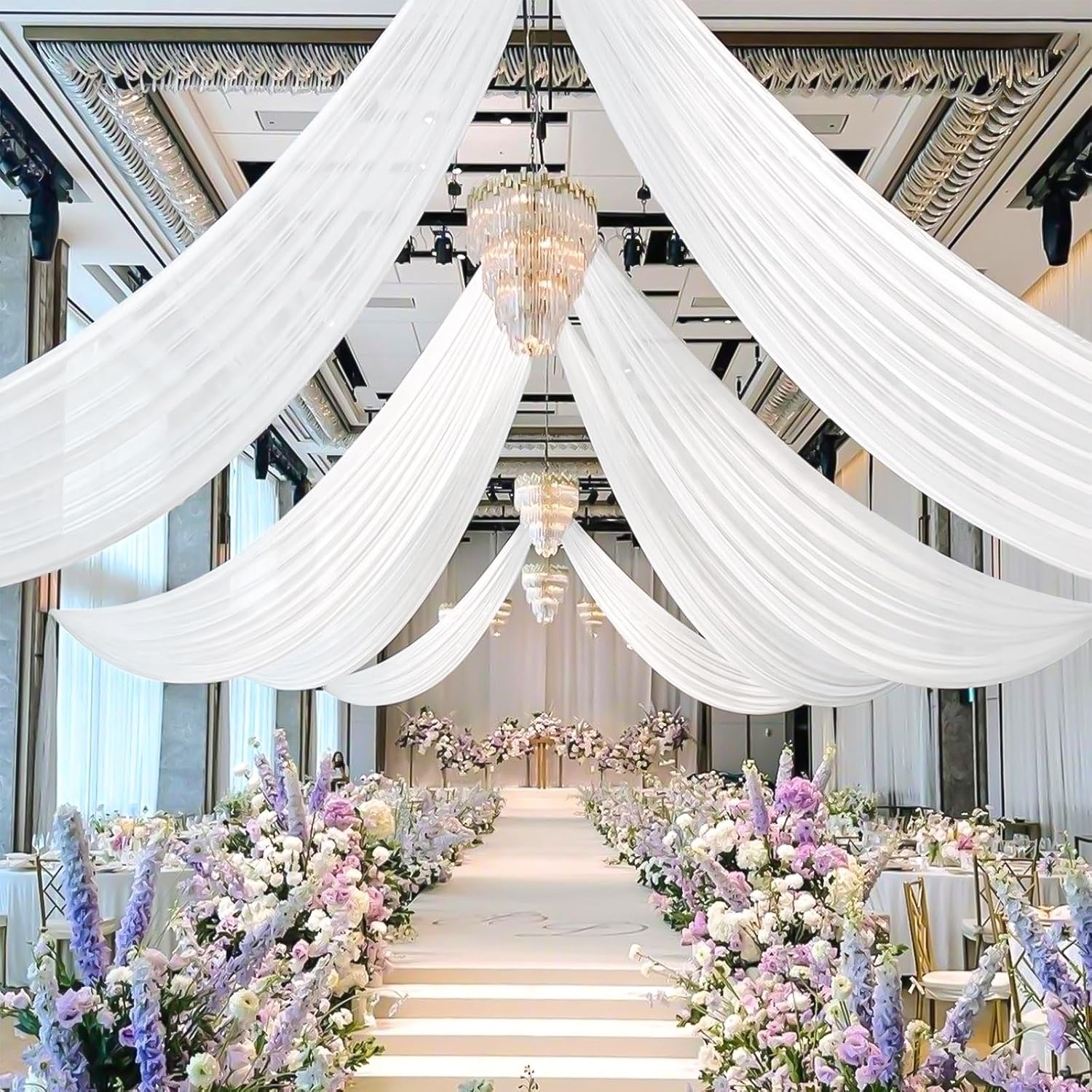 6 Panels White Ceiling Drapes for Wedding 5ftx15ft Sheer Drapery Chiffon Fabric Arch Draping Curtains for Party Ceremony Birthday Baby Shower Reception Stage Ceiling Decorations