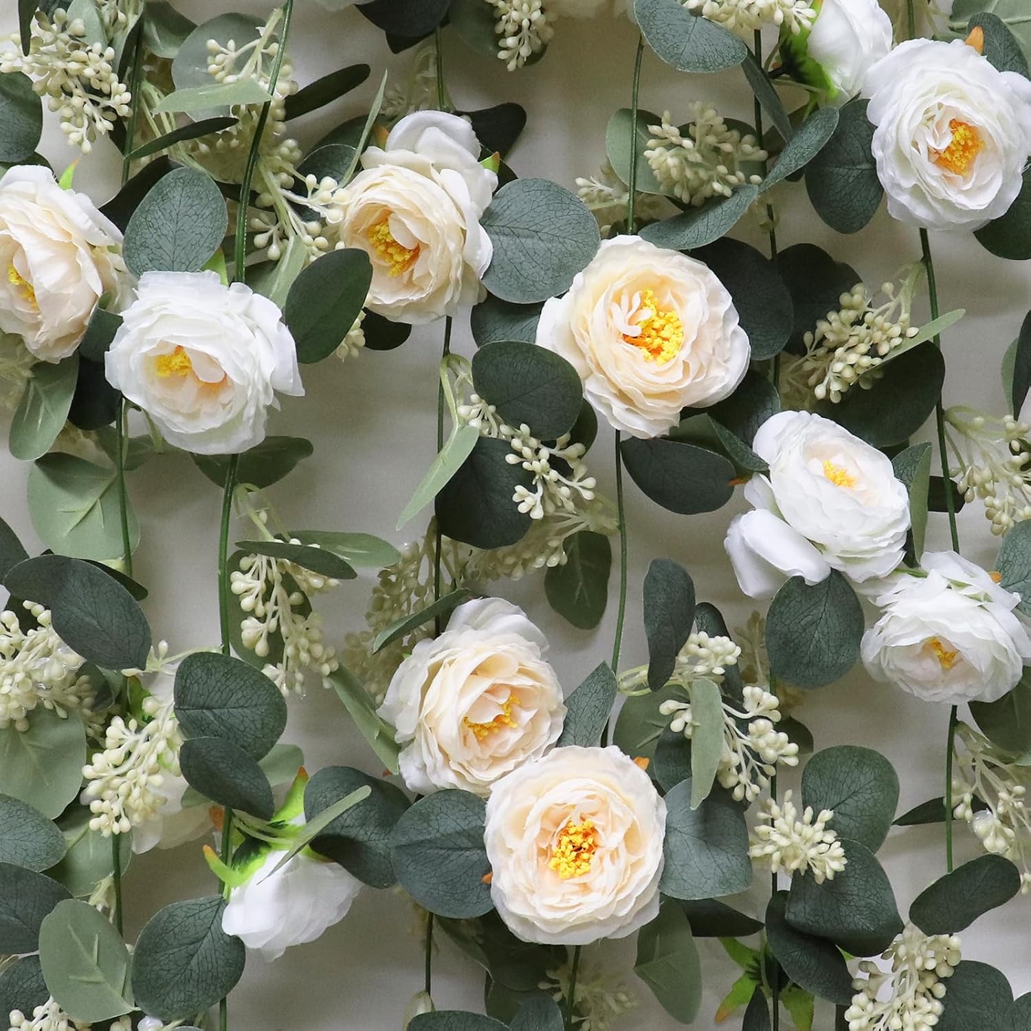 - 🍀🍀【Rose Garland Decor】: The handmade artificial Eucalyptus garland decorations are deal for any wedding or home decoration, such as bedrooms, living rooms, dining table, arches, chairs, backgrounds, corridors, backgrounds, hung on both sides of doors or wedding arches etc. DIY event center. Whether you want to create a romantic atmosphere or add beauty to your life, this fake rose flower vine can blend perfectly.