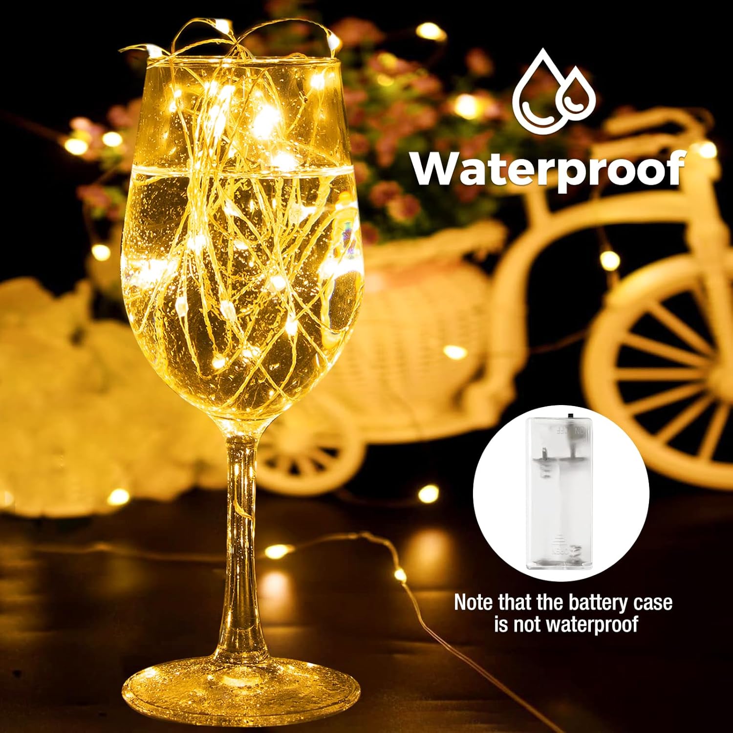 - Waterproof and Safe to Touch: With waterproof design, copper wire fairy lights are suitable for indoor/outdoor use, (battery box is not waterproof) LED string light has low energy consumption, touch safe and reliable, It will not overheat for a long time
