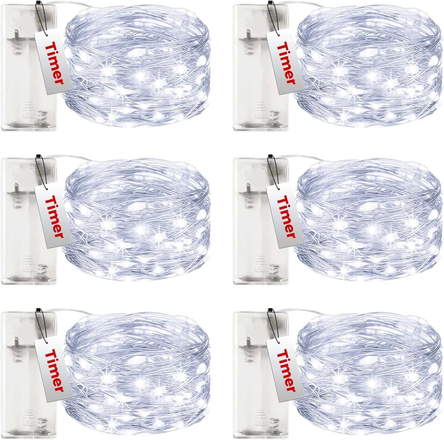 btfarm 6 Pack Fairy Lights Battery Operated with Timer, 10FT 30LED Twinkle Lights Waterproof, Copper Wire Christmas String Lights Battery Powered for Indoor Outdoor Wedding Party Holiday Decorations