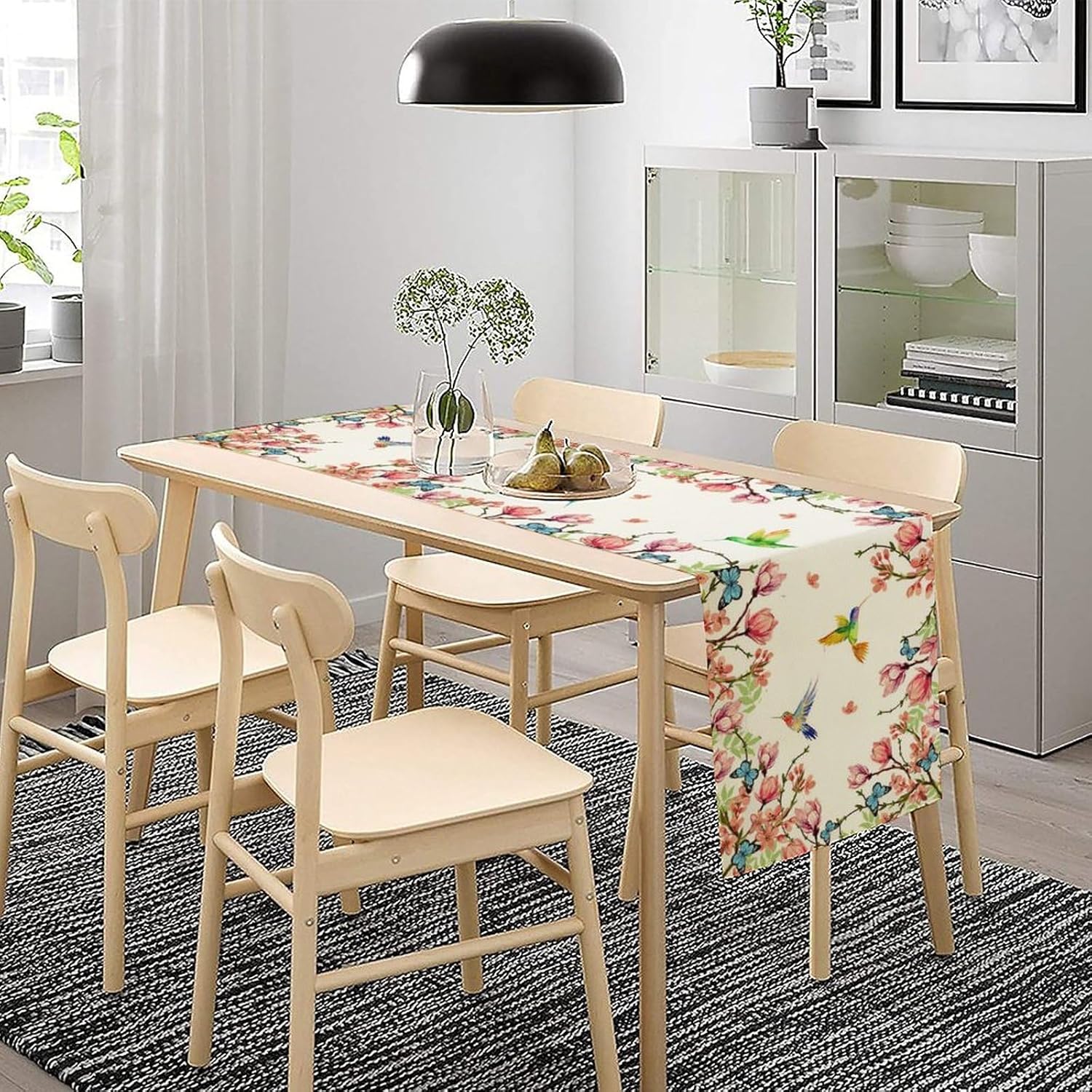 Vintage Watercolor Flower Hummingbird Table Runner Seasonal Spring Garden Plants Birds Florals Farmhouse Country Kitchen Dinner Runner Dining Table Decoration 13"x36"