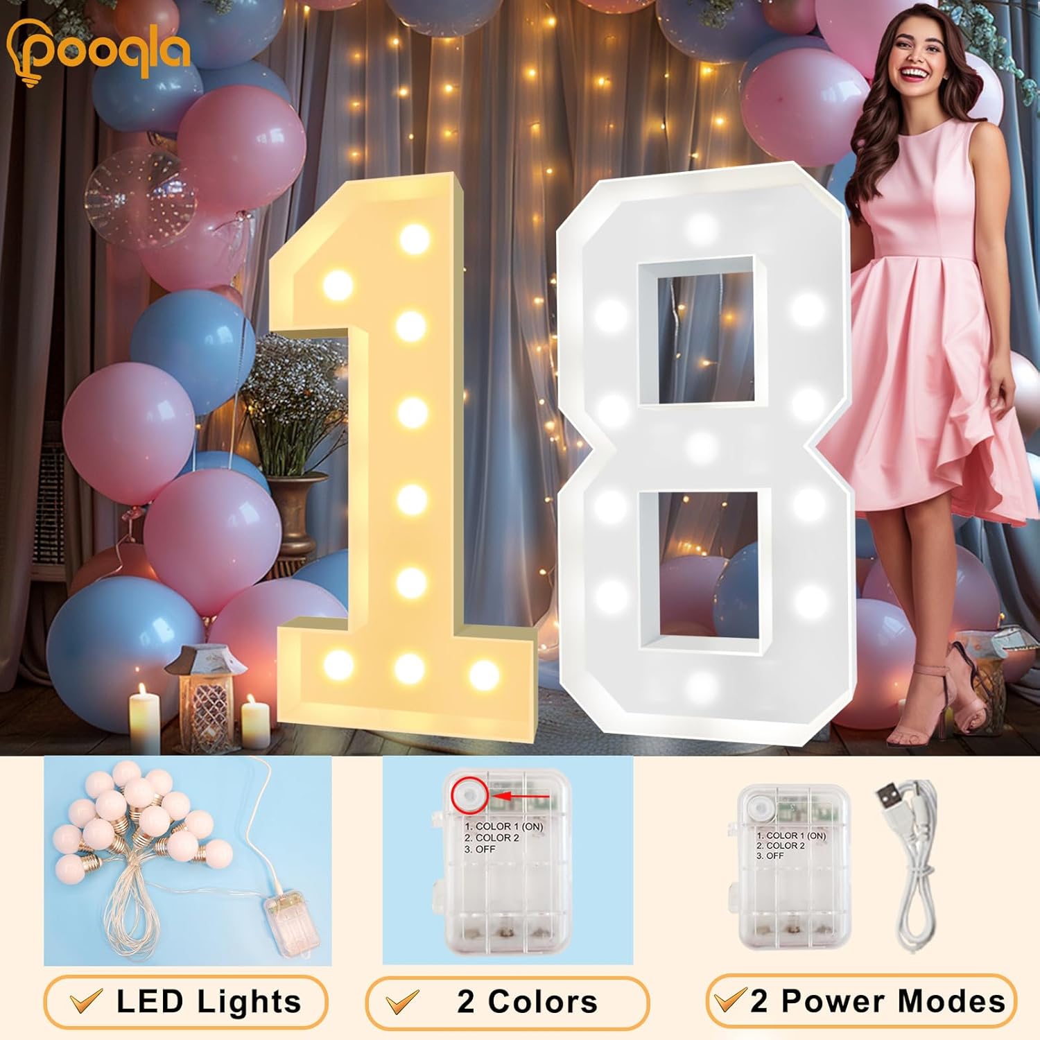 - 2 Colors Lighted Marquee Numbers: Warm White & Cool White,you can choose the color according to your needs. With a switch on the battery box for controlling the color of lights. Good addition for birthday party or wedding decoration