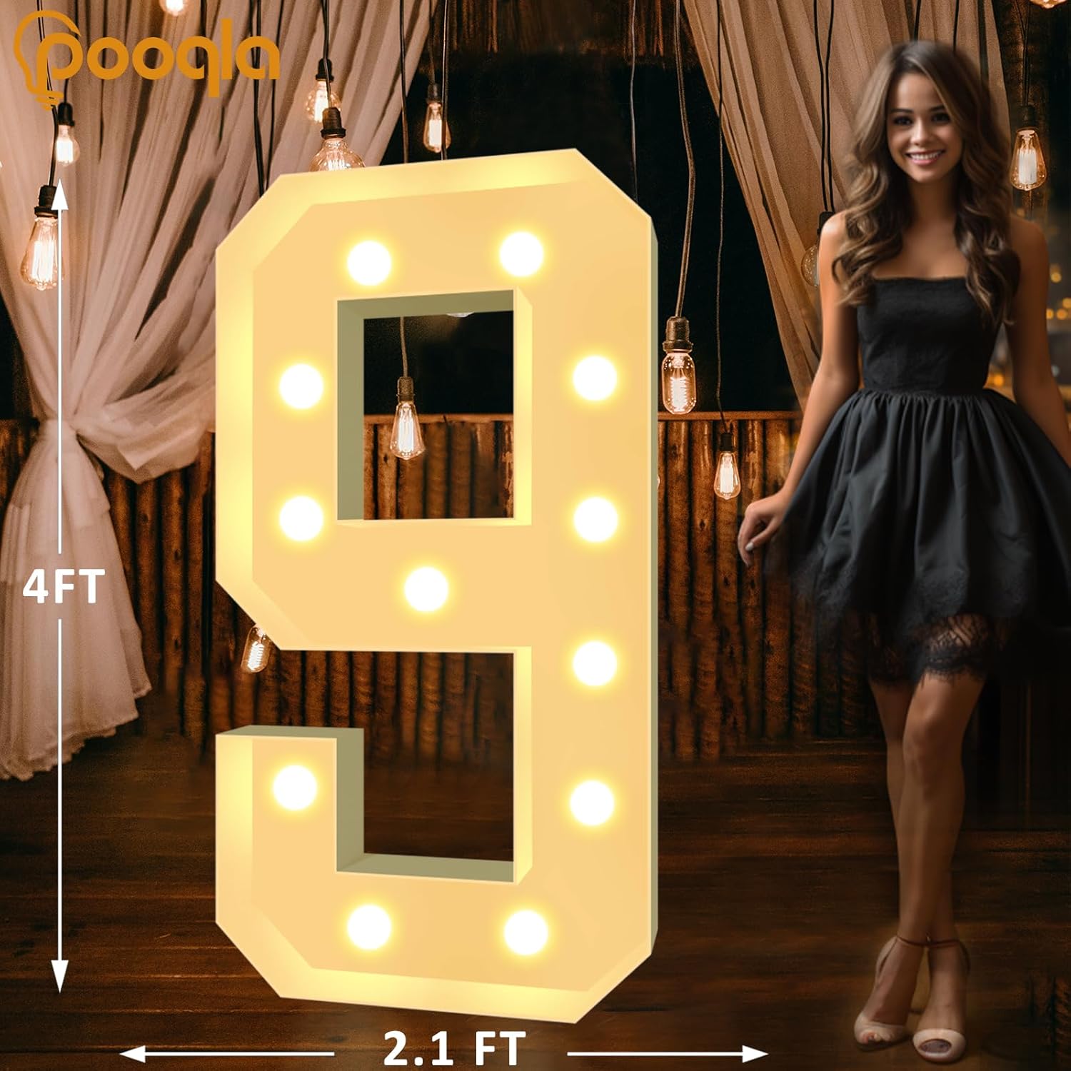 Pooqla 4 FT Light Up Marquee Numbers, Cool White and Warm White LED Large Lighted Marquee Numbers, Giant Mosaic Light Up Numbers for Balloons 9th 19th 90th Birthday Party Decoration, LED Number 9