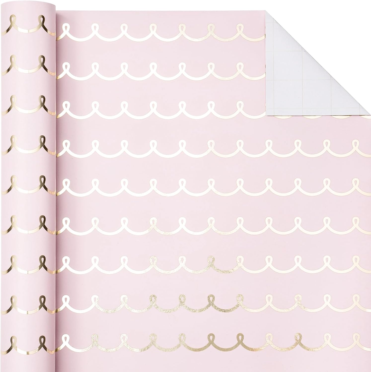 WRAPAHOLIC Pink Wrapping Paper Roll - Mini Roll - 17 Inch x 33 Feet - Metallic Foil Chic Classic Pink and Gold Wedding Wrapping Paper for Birthday, Wedding, Baby Shower, Valentine's Day