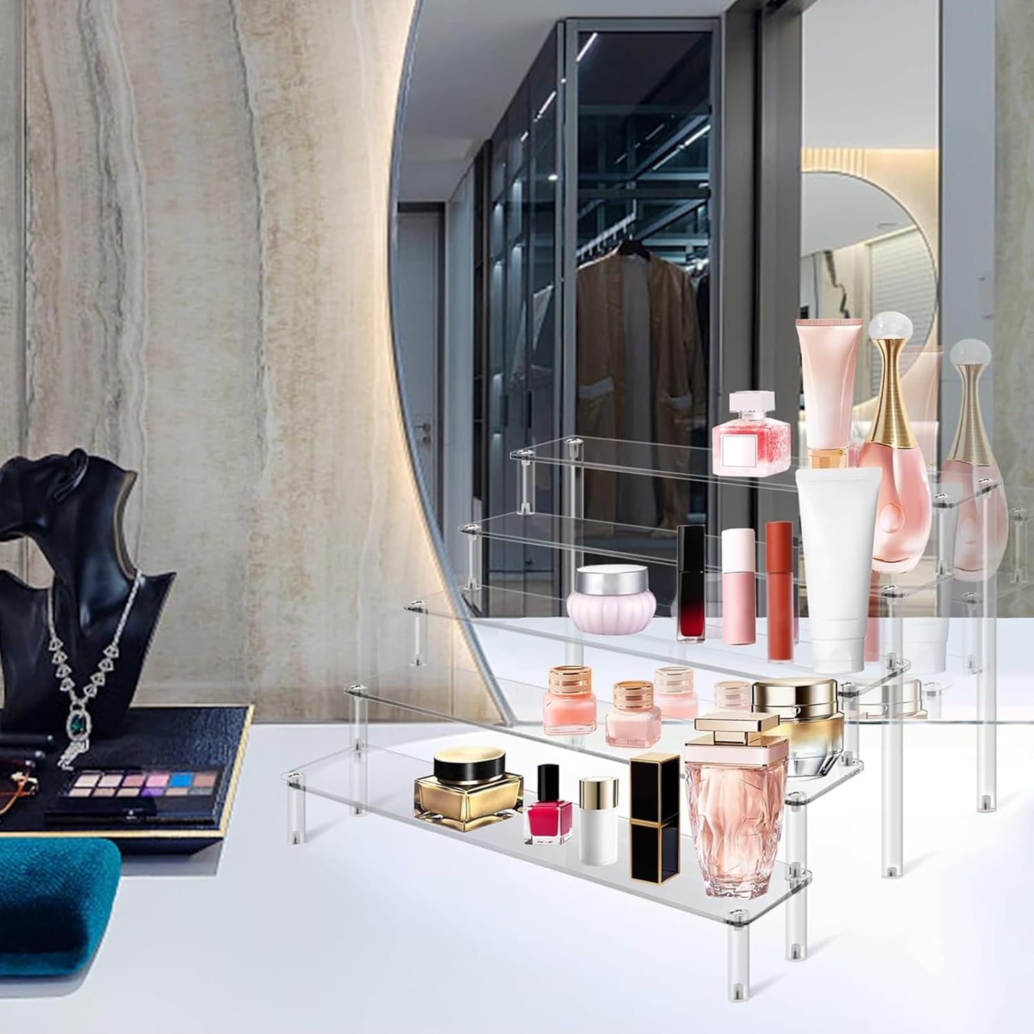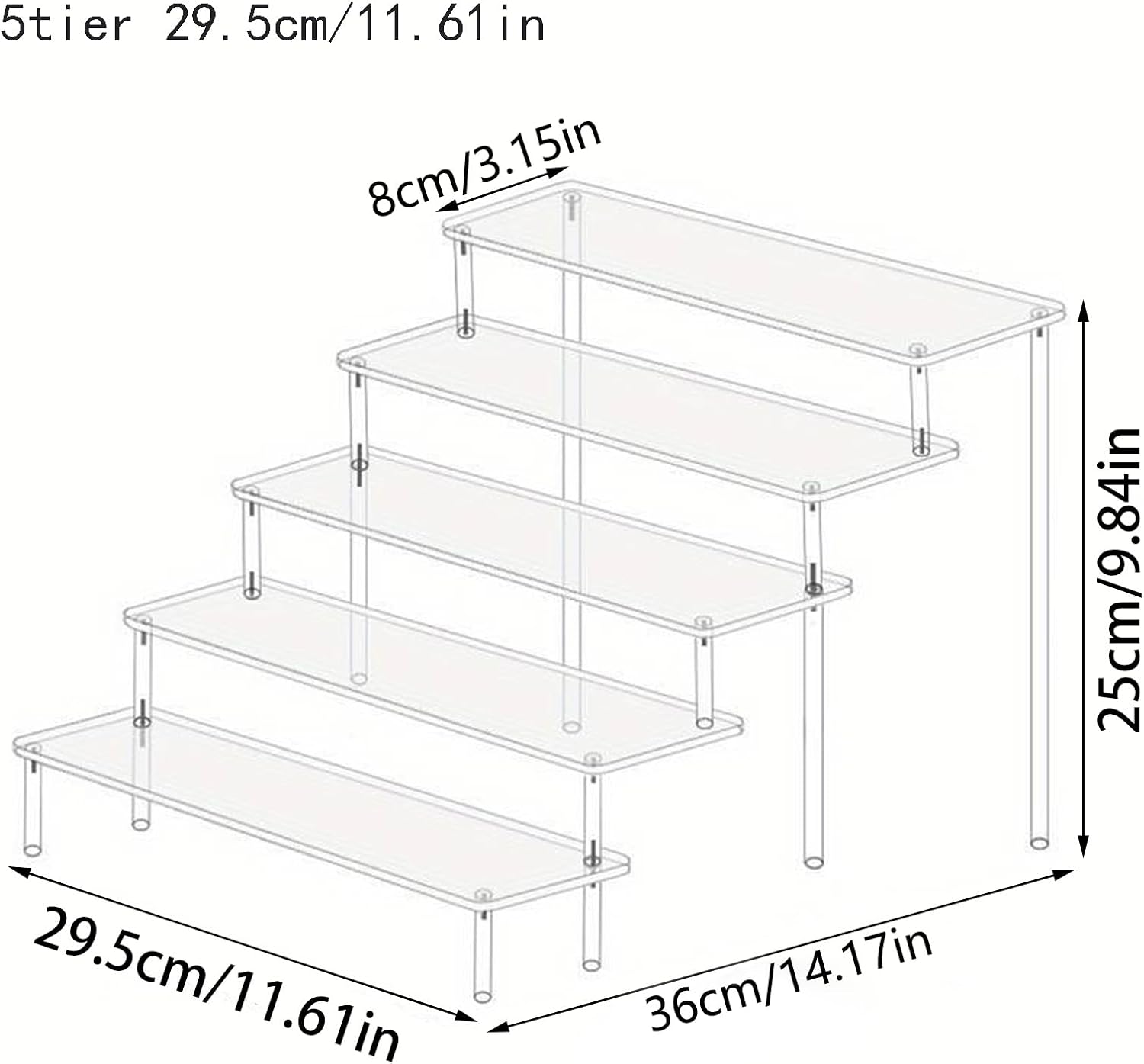 - Multi-Purpose Acrylic Display: This 5-tier acrylic riser is perfect for organizing and displaying perfumes, cupcakes, figures, and other decor items. Its clear design allows for maximum visibility, making it ideal for home, events, or retail use.
