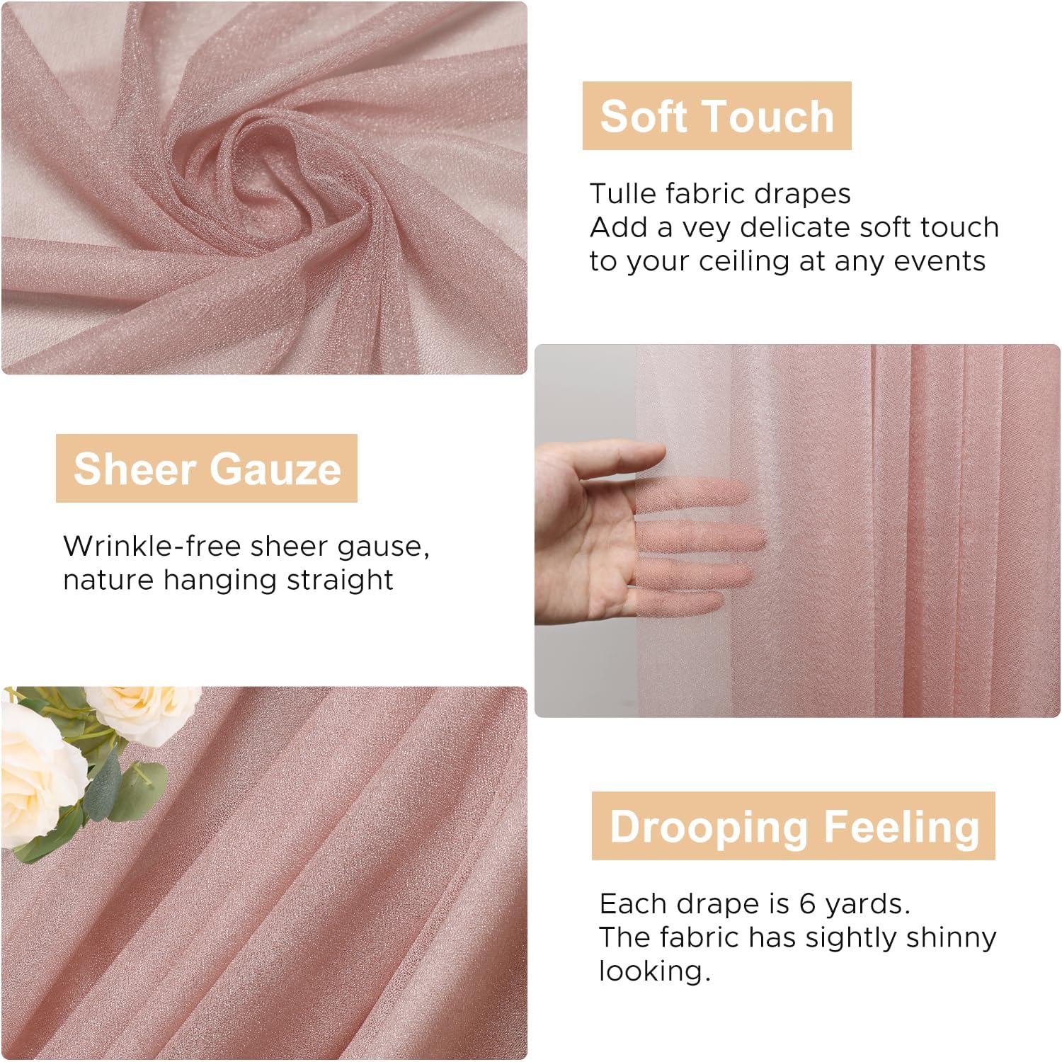 - 【Easy to Clean】Sheer arch draping fabric can easy to care with hand wash or machine gently with a laundry bag. Wedding arch sheer drapes can hang to dry quickly and keep vertical. Do not bleach or twist.
