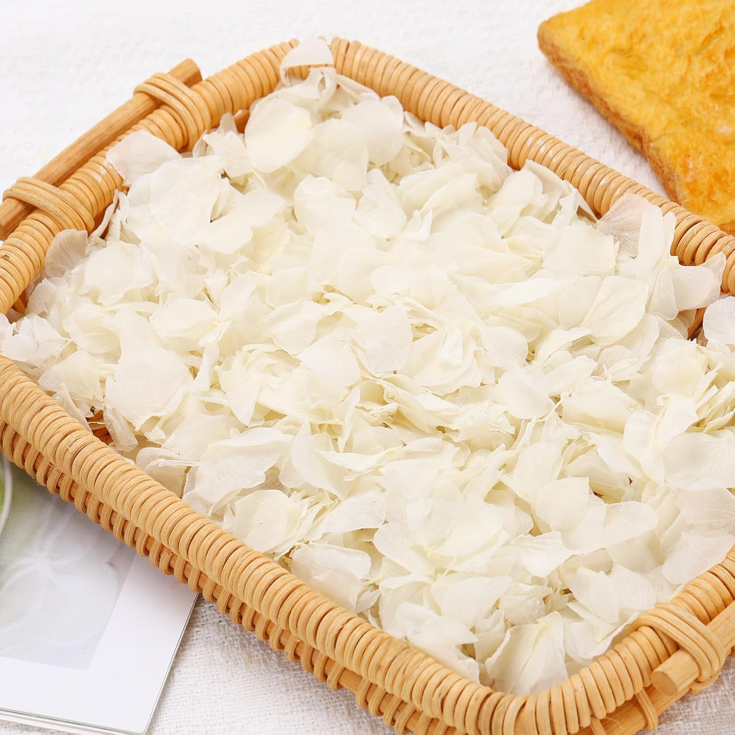 - NATURAL REAL FLOWER PETALS: Each package contains about 1500 well-preserved white petals. Your petals are made from high-quality fresh hydrangea flowers and special preservation techniques. Unlike artificial petals, they are real flowers that can be last 1 to 3 years