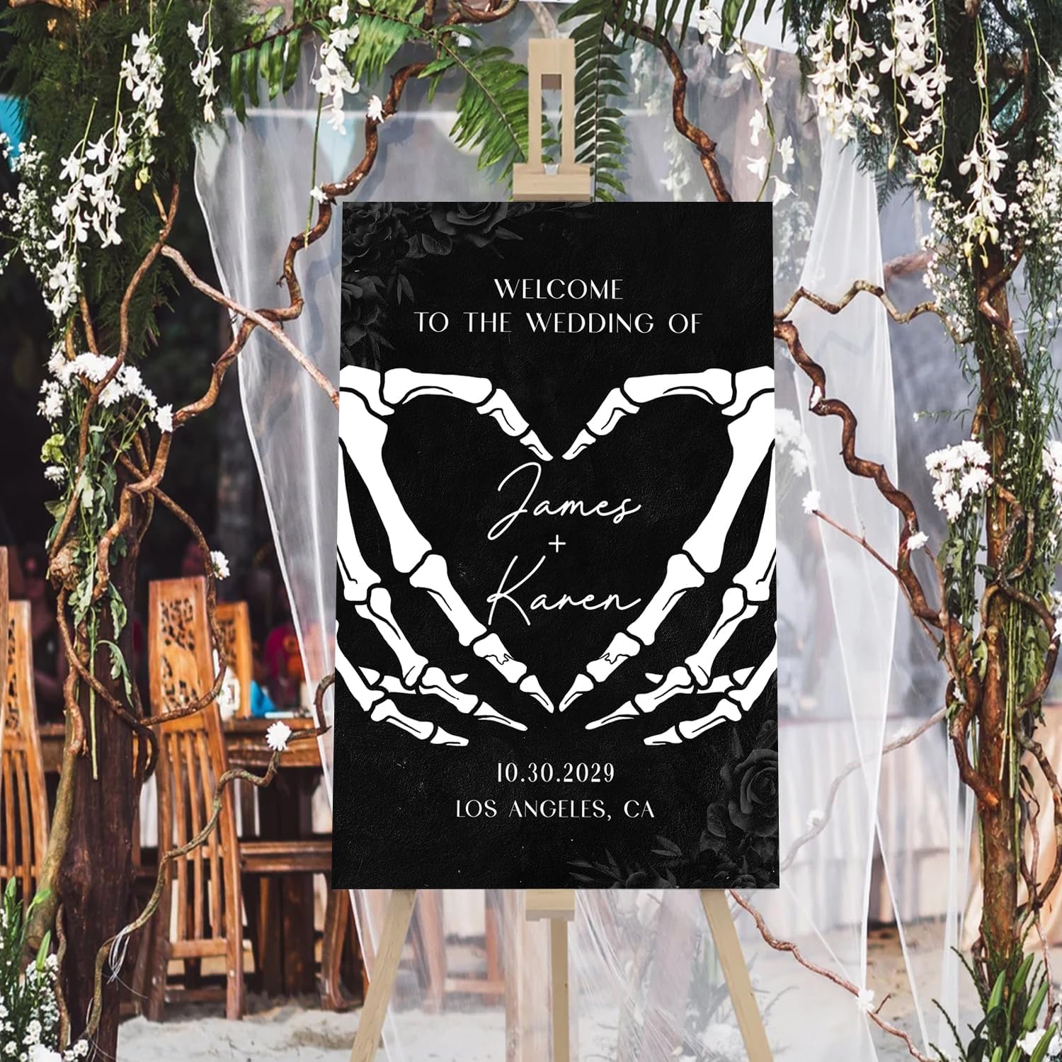 - A stunning choice for those planning a Gothic-inspired wedding or a Halloween-themed celebration. Whether you're exchanging vows on All Hallows' Eve or simply love the allure of Gothic aesthetics, this welcome sign will captivate your guests and make a bold statement.