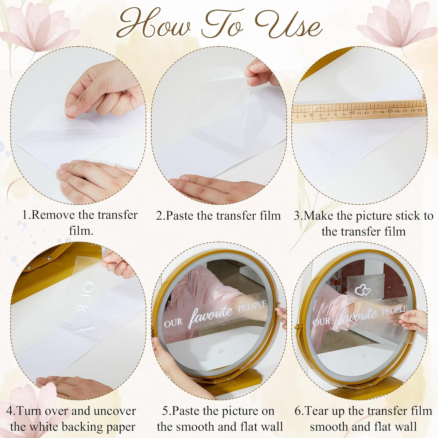 - Easy Application and Removal: our DIY wedding mirror decal is easy to apply, ensuring a smooth experience for you; Post event, you can remove it easily, leaving no residue, thus ensuring your surfaces remain pristine